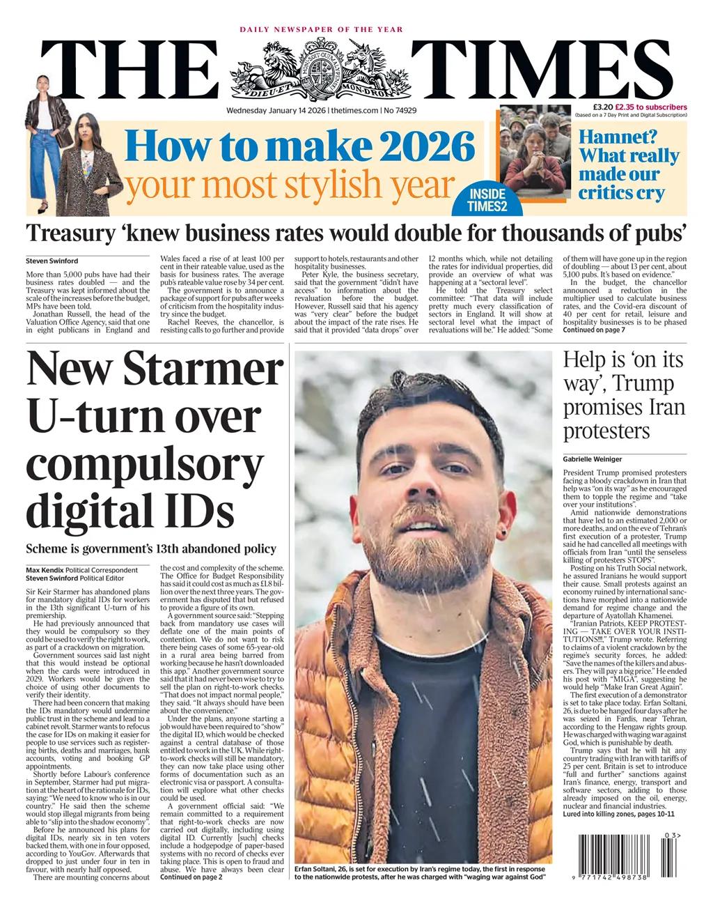 《泰晤士报》报道,照片显示,26岁的伊朗的人埃尔凡·索尔塔尼今日将被伊朗政权处决,这是对全国抗议活动的首次回应,此前他被指控“对上帝发动战争”了。 另外该报关注了,英国政府又一次大转弯,这次是在强制数字身份证方面。 凯尔·斯塔默爵士在其首相任期内的第13次重大政策转向中,放弃了为工人设置强制性数字身份识别的计划。 他此前曾宣布这些将是强制性的,以便用于核实工作权利,作为打击移民行动的一部分。 政府消息人士昨晚表示,2029年引入这些卡片时,这将改为可选项。工人将可以选择使用其他文件来核实身份。 曾有人担心强制实施身份识别会破坏公众对该计划的信任,并导致内阁内部的反对。 首相斯塔默希望将身份识别的重点重新放在让人们更便捷地使用诸如出生、死亡和婚姻登记、银行账户、投票以及预约全科医生等服务上。 在9月工党会议前不久,斯塔默将移民问题作为身份识别理由的核心,他说:“我们需要知道谁在我们国家。” 他当时表示该计划将阻止非法移民 “潜入影子经济”。 在他宣布数字身份识别计划之前,根据舆观调查公司的数据,近十分之六的选民支持,四分之一反对。之后,支持率降至略低于十分之四,近一半人反对。 人们对数字身份证的担忧与日俱增。 该计划的成本和复杂性。预算责任办公室表示,在未来三年里,其成本可能高达80亿英镑。 英国政府对此提出了异议,但拒绝给出自己的数字。 一位政府消息人士称:“从强制使用案例中退一步将消除主要争议点之一。我们不想冒这样的风险,即农村地区的某个65岁老人因为没有下载这个应用程序而被禁止工作。” 另一位政府消息人士表示,试图以工作权利检查来推销该计划从来都不明智。“这对普通人没有影响,”他们说,“它一直都应该是关于便利性的。” 根据这些计划,任何开始工作的人都将被要求“出示”数字身份,该身份将与有权在英国工作的人员中央数据库进行核对。 虽然工作权利检查仍将是强制性的,但现在可以使用其他形式的文件,如电子签证或护照来进行检查。一项咨询将探讨还可以使用哪些其他检查方式。 一位政府官员表示:“我们仍然致力于要求现在以数字方式进行工作权利检查,包括使用数字身份。目前,(此类)检查包括一堆杂乱的纸质系统,而且没有检查记录。这容易遭受欺诈和滥用。我们一直都很清楚。