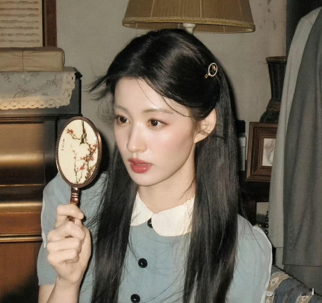 复古风少女,手持花镜,优雅动人
