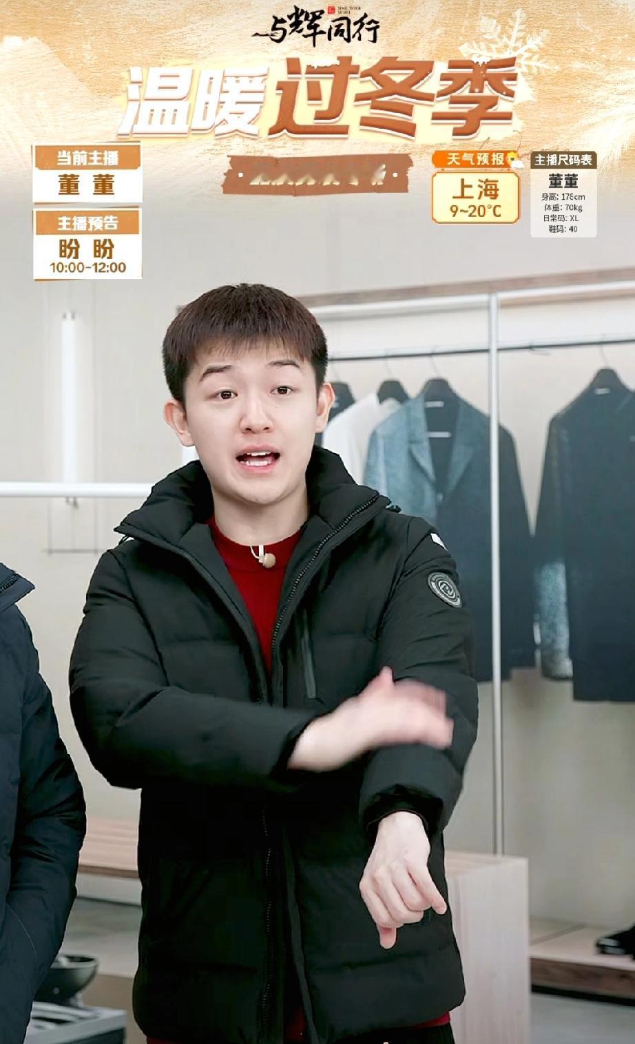 发现与辉同行的直播间的背景板越做越精致了!太好了!这给那些模仿与辉同行直播间的又增加了一些难度。 今天早上董董上播,带来精品男装,我一看还以为是在精品男装店里播的呢。这个背景板给人视觉感确实更强更好了。这就给那些模仿与辉同行的直播间又增加了难度了。 现在很多直播间模仿与辉同行,主播不露脸,卖与辉同行相似的,甚至是一样的产品,那些小零食很容易让人混淆,真是太可恶了!我身边都有朋友上当过,收到货发现不对,一检查发现不是在与辉同行买的,上当受骗了!退吧,没有多少钱也不值当,吃吧,心里面别别扭扭的。 当然,一般老粉、老顾客不会上当,因为对于辉同行足够的熟悉,对于那些新加入的朋友,在买的时候一定要看仔细了。 首先,一定要看清主播,如果不露脸的千万别买。 其次,与辉同行,每一场直播都有很明显的背景板,他们一般都会根据所讲的产品而选择不同的背景板。要多熟悉熟悉,以后避免上当受骗。 董宇辉 与辉同行