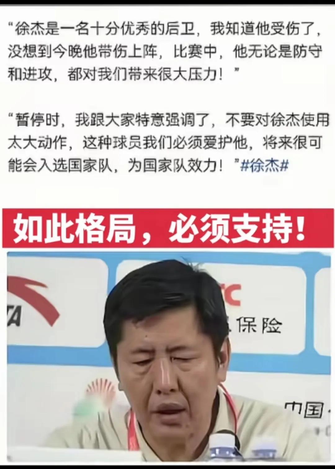 南京队输广东,赛后老板不怪球员,不怪教练,因为他们尽力了,打不过是现实的。 赛前其实南京准备充分,他们知道如果能打赢广东意味着什么,所以请来灵谷寺法师布阵,让广东队投不进。 特别想让黄荣奇,邬挺嘉来严防徐杰,可以不择手段。黄荣奇说:徐杰是我兄弟,正常我防不住他,非正常我不打,噢我有伤,这场得休息。邬挺嘉说:开幕战我伤他一回了,天天做噩梦,遣责自己到现在,从良心来讲,让我伤这么优秀的球员,我会寝食难安的,我现在对付他要文明打球。 比赛过程中广东队手感都一般,只有徐杰,只有徐杰,虽然得分不多,但他正负值+26,全队最高,说明了一切问题。 王世龙也输得口服心服,对徐杰各种夸。 CBA到现在,能受到很多对手教练夸的唯有徐杰一个。王博,邱彪,刘维伟,王世龙等等都是喜欢徐杰的,丁伟更是交代自己球员徐杰有伤,不要对他太大动作,要保护他。