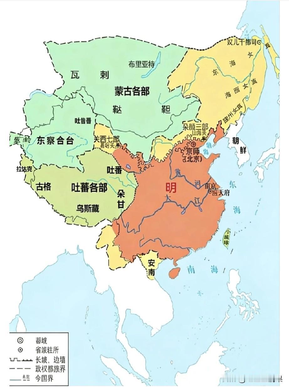 大明鼎盛时期的版图,应该就是这样的,包括少数民族那些区域,因为前期他们都是称臣的,也就说明这些领土都是大明版图。 直到后期,那些少数民族反叛,脱离了大明而已。就像大清朝一样,前期少数民族都是称臣,难道不能算大清的领土吗?清朝到后期,各地都宣布独立,也不能算清朝只有紫禁城吧。