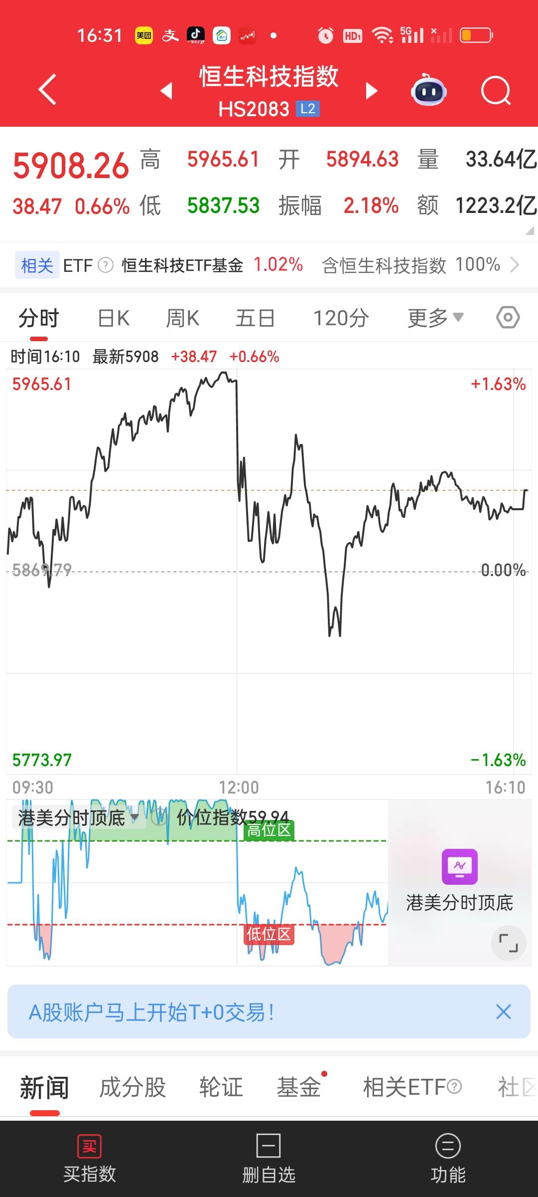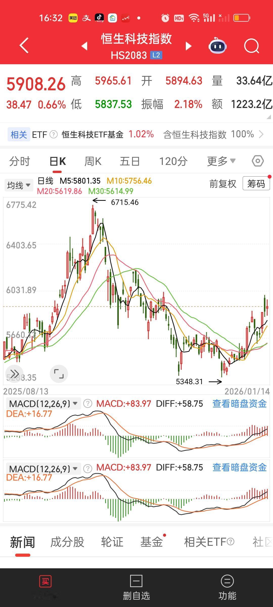 下午我们下杀的时候把港股也带下去了,但我们收盘以后,港股又强势翻红了。显示出不错的韧性。两大指数收盘依旧稳稳站在所有均线的上方。这个地方继续拿着就好,没有太大的风险。