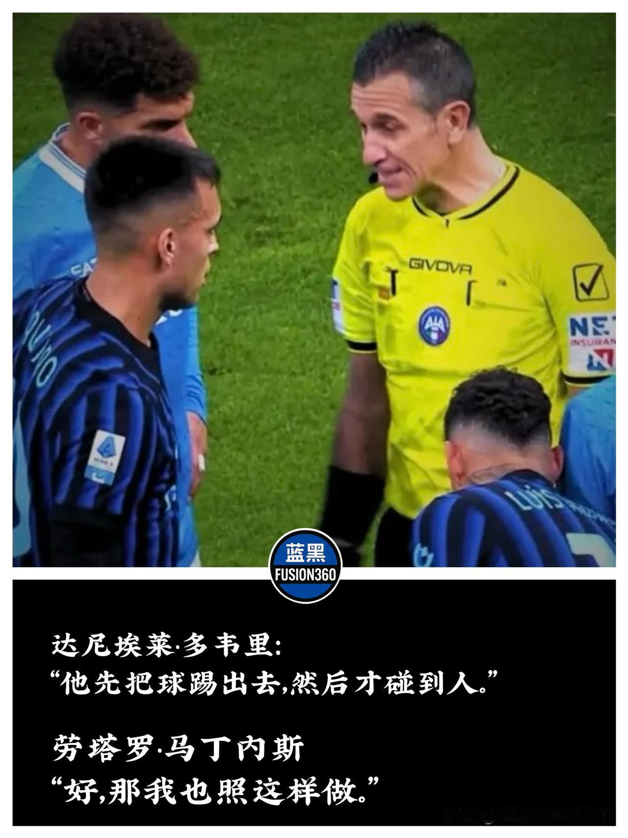 胡安恶犯竟逃脱!劳塔罗怒怼裁判:行,以后我也这么踢! 意甲裁判真是把“盲僧”当职业操守。胡安·热苏斯借解围直接亮鞋钉蹬踏图拉姆,这种废人动作,在主裁多维里眼里竟然全是空气。 裁判的解释更把人当傻子:“他先铲到球了”。劳塔罗没废话,直接一句神级反讽甩脸上:“行,既然这也算好球,那以后我也这么踢!” 这话比骂脏话狠多了。直接把多维里的双标逻辑按在地上摩擦:既然你定这种流氓规则,就别怪我们不讲武德。照这“先碰球就能废人”的标准,意甲迟早变格斗场!国际米兰 💙🖤