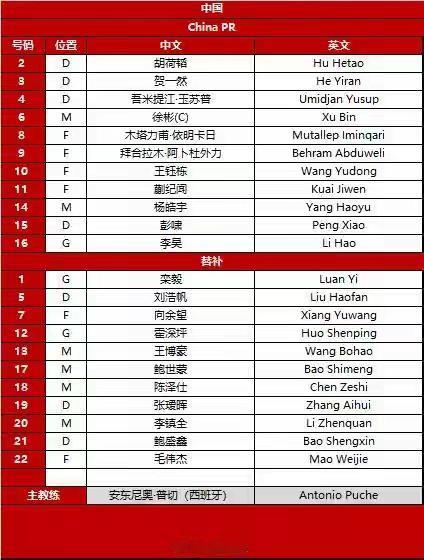 1月14日中国足球传来最新消息: U23亚洲杯中国队对阵泰国队的首发阵容出炉,安东尼奥大胆变阵,疑似排出了3后卫阵型,停赛的右后卫杨希的位置被中场木塔力甫取代,而李镇全的位置被进攻属性蒯纪闻取代,看来今晚中国队准备要加强进攻全力拿3分争小组第一了,毕竟泰国队是这个小组实力相对最弱的球队了。 附中国U23首发:16-李昊、2-胡荷韬、3-贺一然、4-吾米提江、15-彭啸、14-杨皓宇、6-徐彬、8-木塔力甫、11-蒯纪闻、9-拜合拉木、10-王钰栋;u23世界杯 国足
