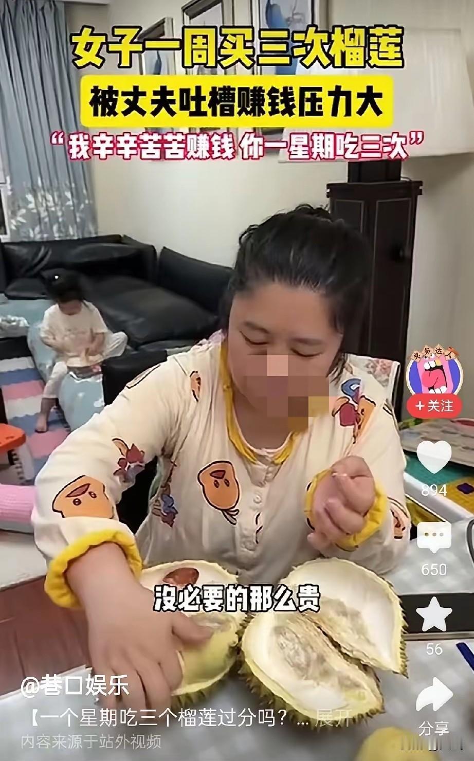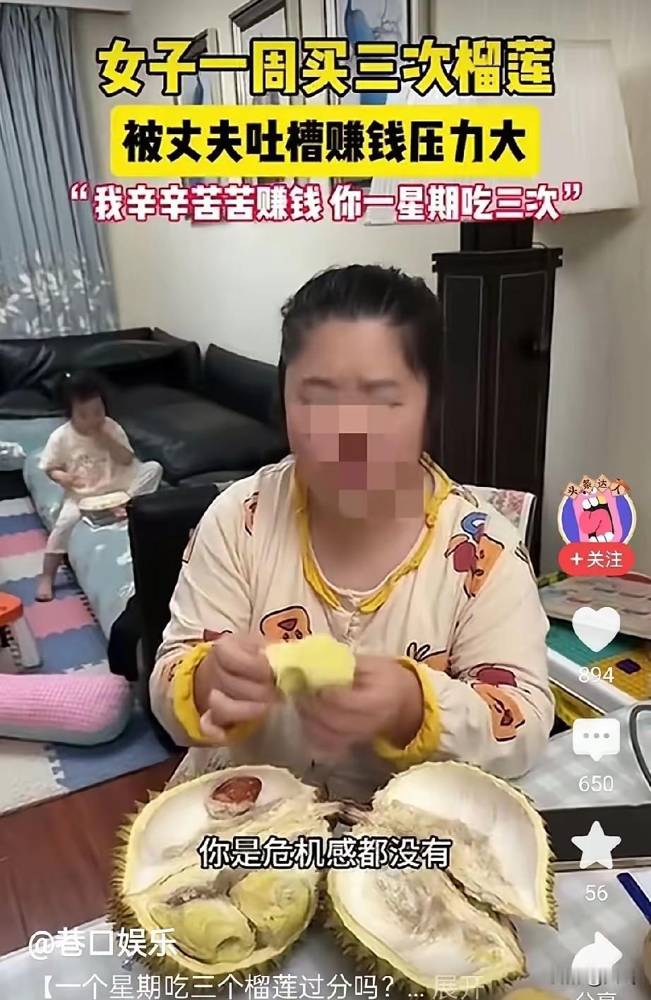 榴妻子又拎回一颗金枕榴莲。这已是本周第三次,丈夫的眉头紧皱。 "我辛辛苦苦赚钱,你一周吃三次榴莲,你是一点危机感都没有啊!"丈夫摔下手中的账单。 妻子正在开榴莲的手顿了顿:"我一周吃三个榴莲你都要说我?我又不是天天吃海参鲍鱼。" "没必要买这么贵的。"丈夫的声音带着疲惫。 妻子突然发火:"有完没完?吃榴莲怎么呢?你养不起就让别人养!" 空气凝固了。丈夫看着满地狼藉的果壳,突然觉得那颗刺球般的果实,扎破了他对婚姻最后的幻想。
