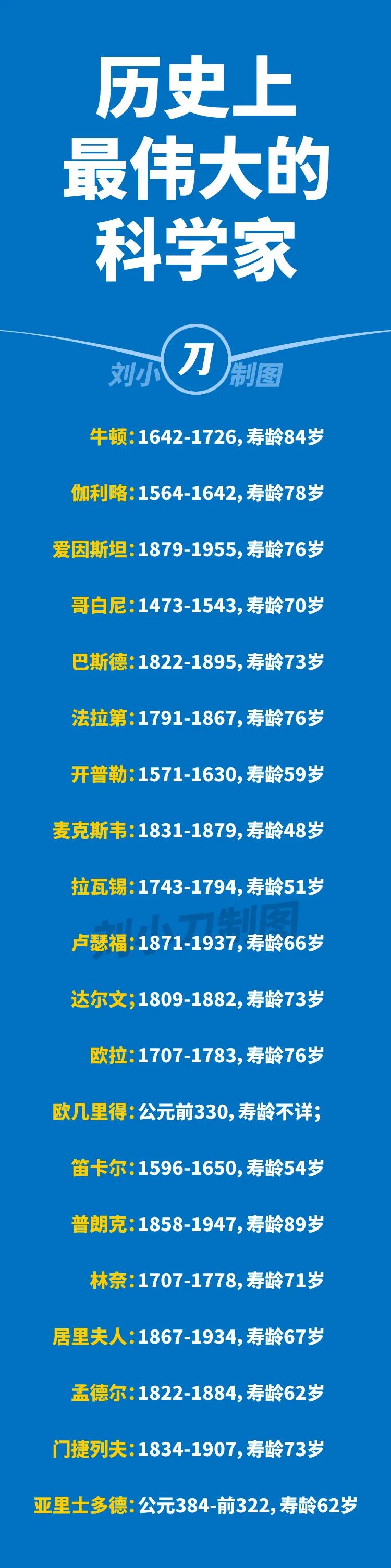 为什么历史上最伟大的科学家都很长寿? 首先我们要知道,这些历史上最知名的科学家可不是来自于社会的底层。 他们大多都拥有能够进行科学实验的基础和机会,而在他们成名之后,更是能够处于社会的中上层。 所以他们能够获得远超普通人的食物、居住条件和医疗条件。 即使像是法拉第出身贫寒,但是他的成名之后也得到了支持,摆脱了贫困的生存环境,最终活了76岁的高龄。