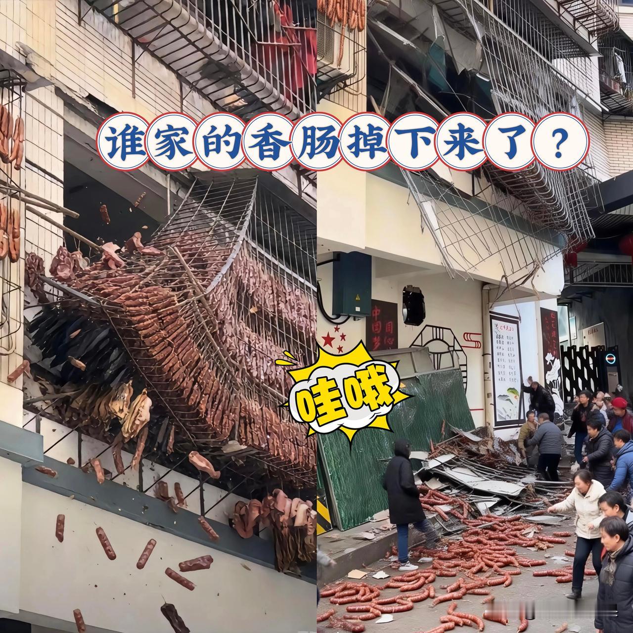 看到个超搞笑的画面,有人家晒香肠直接把窗架压塌了。 画面里密密麻麻的香肠挂满窗架,分量足到让架子直接垮掉,堪称“天降香肠宴”现场。不得不说这家人的年味也太浓了,就是窗架没扛住这份热情! 这满墙的香肠,一看就是大户人家的年味,结果架子先扛不住了,主打一个“实力不允许低调”!