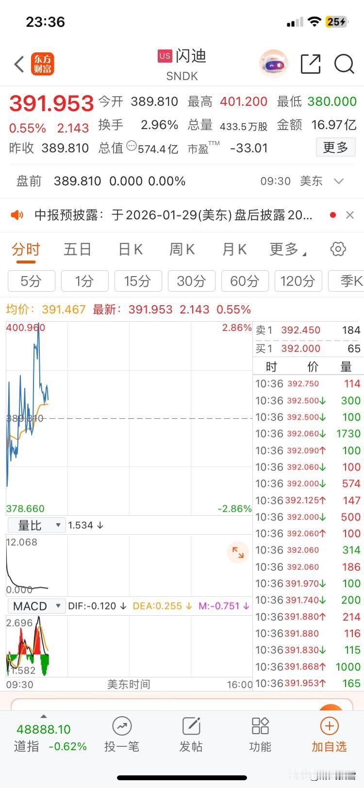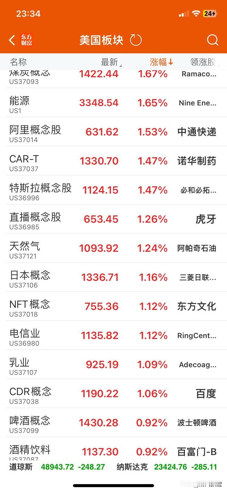 美市场已开盘,美三指数低开低走,中国龙指数低开高走 1月14日开盘1小时数据,明天早上再跟踪! 近期大A走独立行情,美映射→港→ A比较弱! 美股三大指数集体低开低走,道指跌0.50%,纳指跌1.19%,标普500跌0.82%,纳指跌幅居前。 龙指数上涨0.43 %。 上涨板块集中在印度科技(涨4.29%)、数字货币ETF(涨2.71%)→多元金融等,页岩气、油、煤能源板块亦表现亮眼,商业航天板块则走弱跌1.46%。 美大科技英伟达、特斯拉跌,闪迪→存储低开高走。