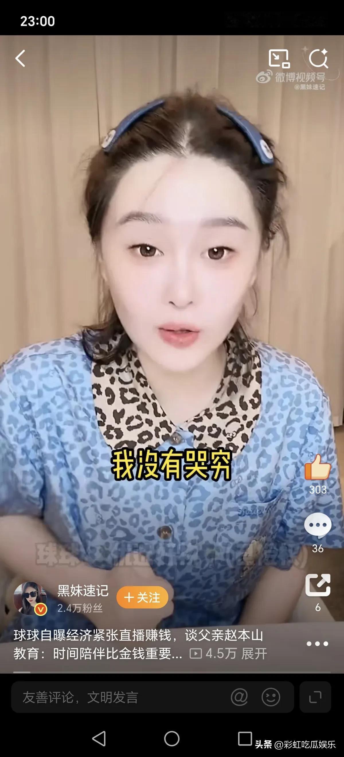 球球求生欲也太强了,她看到闫学晶哭穷被封号,她也很害怕,她说自己没有哭穷,因为她根本没有大家想象得那么有钱。 她小时候想买lv包,爸爸赵本山宁愿陪她看一个小时,也舍不得给她买。 家风真的很重要,赵本山教育儿女都是勤俭节约,不消耗自己的福报,他们家三观很正,牛牛球球从来不会啃老,都是自食其力很独立。