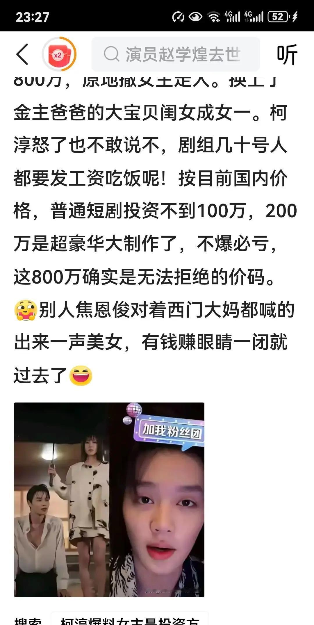 短剧圈突然冒出“关系户”三个字,一帮新人演员集体破防。 3月初,一个拍了80部竖屏剧还没红的小伙子发视频吐槽,说自己试镜十次九次被告知“已定人”,后来一打听,角色早被某老板外甥拿走。 紧接着,小红书和B站冒出更多副导演匿名爆料:投资方直接点名要“带资进组”,预算里还单开一条“背景咖宣传费”网友扒出两部热剧男主,一个是地产大佬公子,一个是电视台前主持的儿子,演技尴尬却稳坐C位。 原本靠脸和拼命就能出头的赛道,现在得先拼爹,难怪素人演员哀嚎:这行也沦陷了。 草根逆袭的窗口被关了一半,剩下的那一半得靠命。