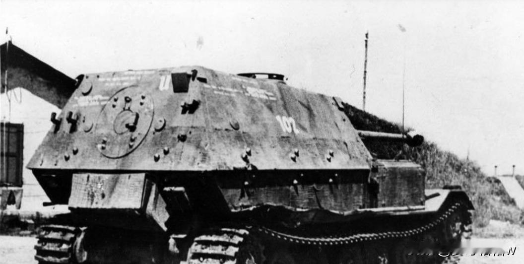 “斐迪南”坦克歼击车在经历了库尔斯克战役可怕的失利以后,德三军事工业把大约50辆幸存下来的“斐迪南”改造成了“大象”坦克歼击车,虽然德三军事工业力所能及的给“大象”安装了机枪和车长指挥塔。 但是坦率的说“大象”对“斐迪南”存在的问题并没有做出根本的改变。 例如“斐迪南”上存在的机械装置可靠性不佳、高油耗、机动性差等问题在“大象”上面一样存在,没办法,因为这些问题是“斐迪南”胎里带来的,小修小补的“大象”无能为力。 需要说明的是,50辆“大象”的损失原因和“斐迪南”差不多,均是因为地雷,敌方坦克绕到侧后开火、发生机械故障无法疏散后被自己人摧毁。