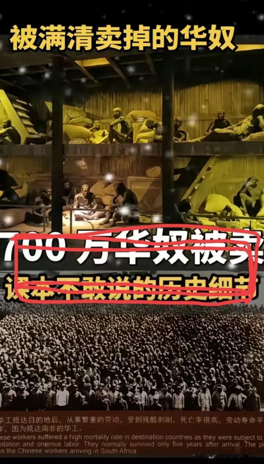 以前看港片里演的那种把人打晕装麻袋运走的桥段,总觉得是编剧夸张了,哪有光天化日抢人的? 现在回头翻翻晚清那些烂账,才发现现实比电影黑多了。 那时候沿海的汉人被叫作“猪仔”,在人贩子眼里根本不算人。 你在家门口可能就值个3到10块银元,一旦被骗上那种“浮动地狱”般的船运到美洲或者澳洲,身价立马翻到400块。 这几十倍的暴利,难怪当时那帮人眼睛都杀红了。 七八百万人啊,就这么稀里糊涂被卖去挖矿修路,女的下场更惨,直接成了“猪花”。 我就纳闷了,那时候的命怎么就这么贱? 怪不得这段黑历史教科书里提都不想提,太压抑了,修史的估计都不知道怎么下笔写这帮畜生的罪行。