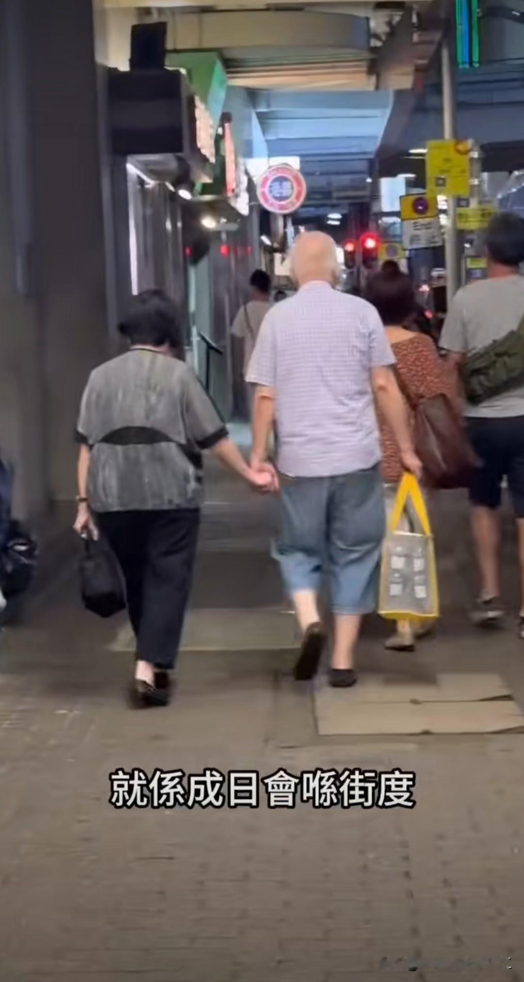 网友:香港最靓的风景,不是维港夜景,是街头紧扣的双手。 从校服到白头,从旺角红绿灯到中环天桥底、深水埗旧楼边……你总会见到手牵手的人。