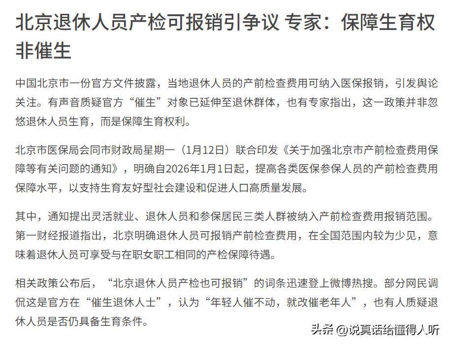 这一政策很好,不是鼓励退休人员生孩子,而是把退休人员生孩子也纳入医疗保障,毕竟会