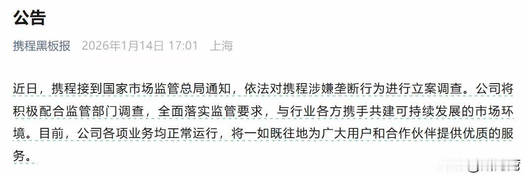 重磅消息!!! 国家市场监督总局依法对携程集团有限公司立案调查! 网友:报应,活该! 网友:罚它个倾家荡产! 网友:前段时间与柬埔寨合作,用户都不干了,果然现在出大问题了。