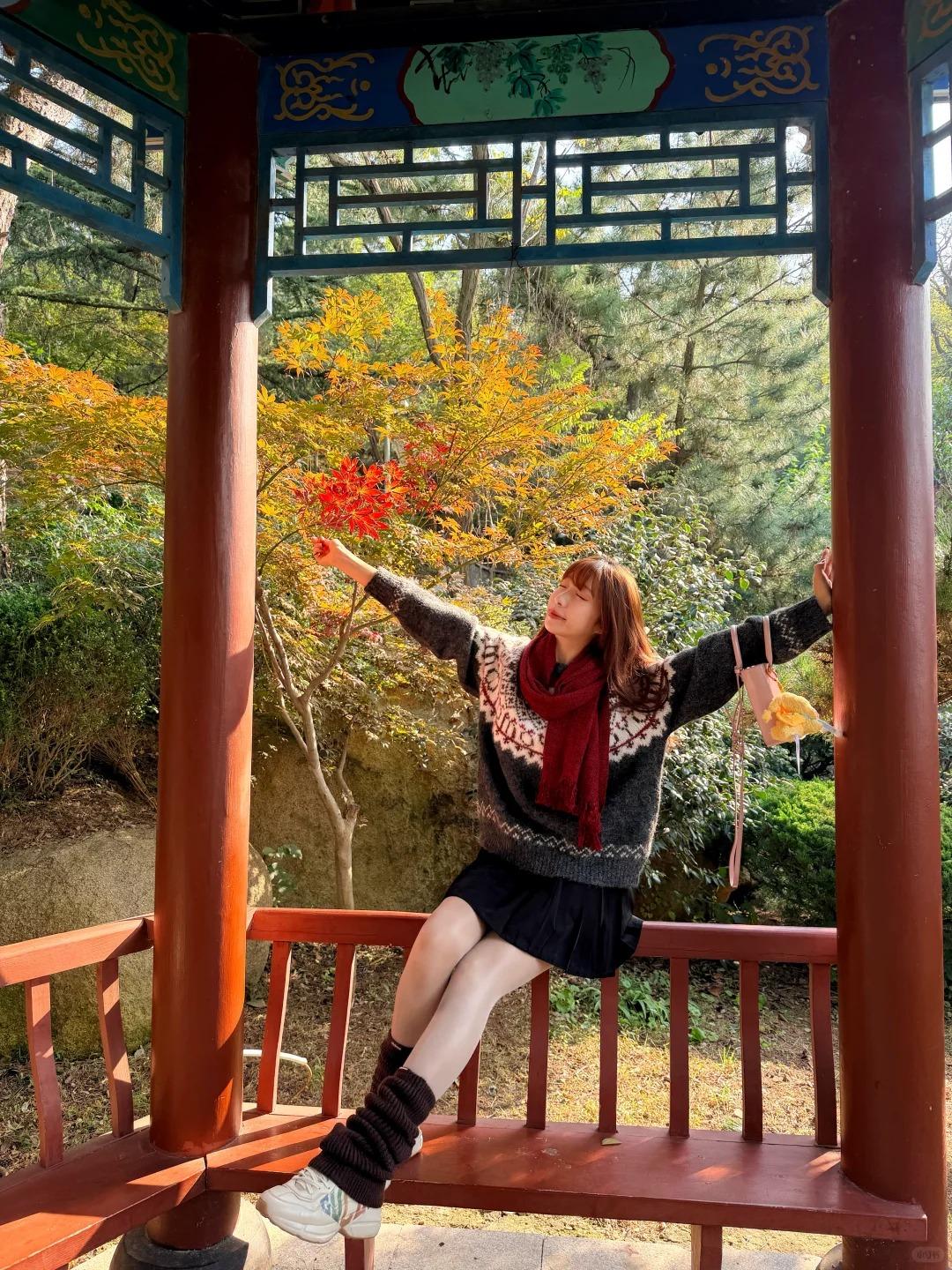 一进山全是漫山的枫叶和金黄银杏,风一吹沙沙作响,阳光透过枝叶洒下来,氛围感直接拉满!重点是没什么人,安安静静的,完全不用像八大关那样人挤人,太舒服了~ 初秋穿@Cloud Season 家的小毛衣刚好!法式浪漫感适配度满分,搭配枫叶拍照超可爱,这个季节只穿一件也不冷,和妈妈慢悠悠散步聊天,这样的午后也太治愈啦~