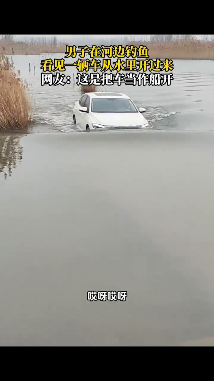 男子在河边钓鱼,看见一辆车从水里开过来。网友:这是把车当作船开。 1月14日(发布)。 钓个鱼,你看掉哪河里去了。