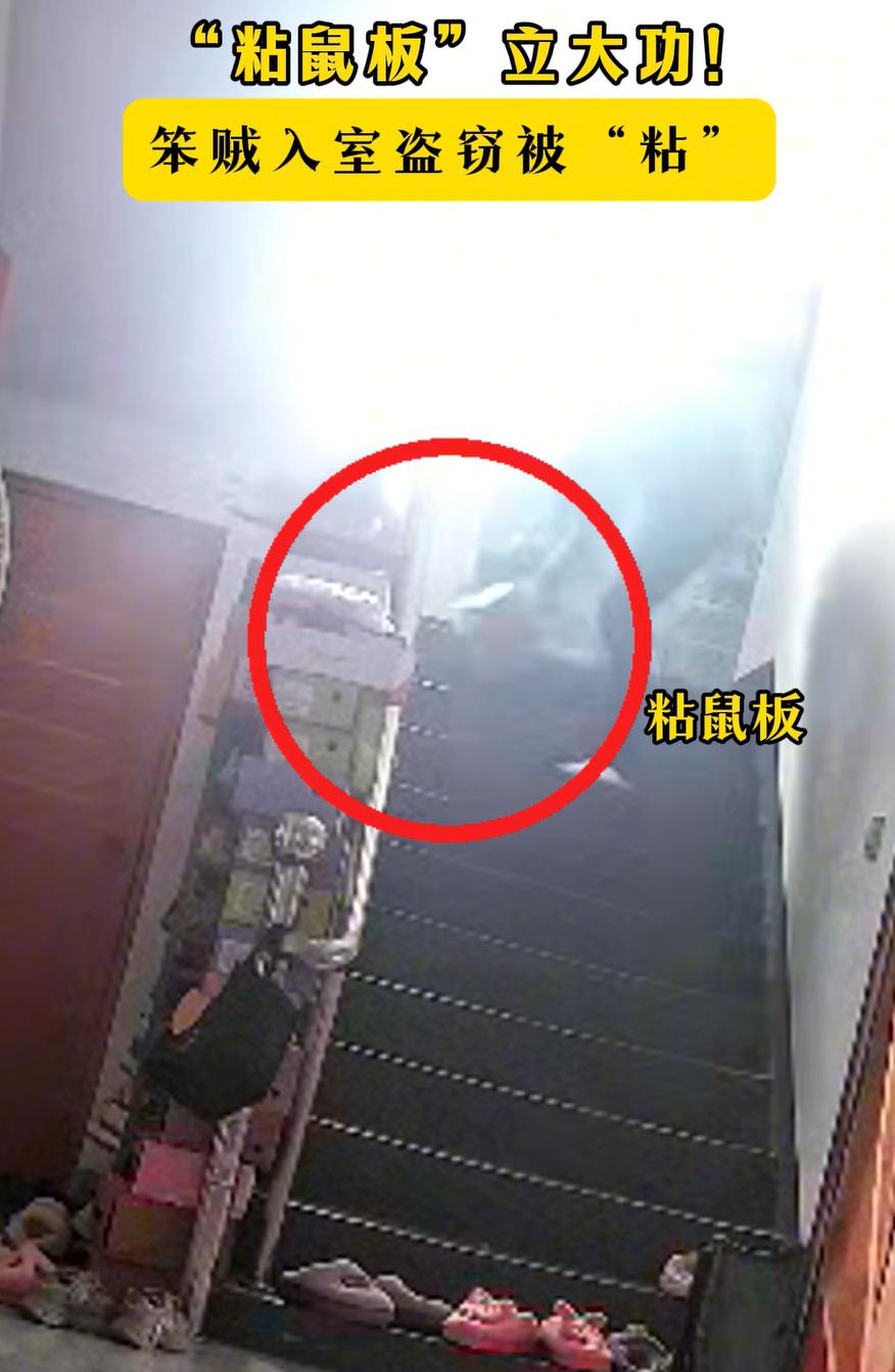 万万没想到!安徽歙县,一男子为了抓老鼠,在家里楼梯拐角的位置放了一个“粘鼠板”,谁知老鼠没抓到,反而让他抓到一个入户盗窃的小偷,事后就连民警都说:“粘鼠板”立大功了! 汪先生那天回家,刚进门就听见后院有动静。他赶紧过去看,只见一个人影慌慌张张地翻墙跑了。汪先生追了一段没追上,回头清点东西,发现一条金项链不见了,于是马上报了警 警察来了一查监控,才明白怎么回事 监控里,一名男子偷偷摸摸溜进汪先生家,得手之后准备离开。谁知走到楼梯拐角,一脚踩上了那块粘鼠板。板子黏性强,他一下子被粘住,走也走不脱,只能停下来使劲往下拽,这么一耽误,就是好几秒 恰恰就是这几秒,汪先生到家了 事后调查,这名小偷姓程。他因为手头紧,那天翻墙进了汪先生家。作案之前,他还特意观察了一圈,以为屋里没有摄像头,才放心动手。哪知道,屋里其实装了隐蔽的监控,他的一举一动全被拍了下来,更没想到脚下还有块粘鼠板等着他 从结果看,这事有点戏剧性,可拆开来看,全是生活里真实存在的因素。普通人家防盗,靠的从来不是多高端的设备,而是一些习惯性的防范。摄像头装得不张扬,动线留点障碍,哪怕只是让人慢几步,都会改变结局。很多入户盗窃,并不是技术多高,而是赌一个快字。只要不顺利,风险立刻上升 这名嫌疑人供述里提到一句话很值得琢磨,他确认屋内没有监控。这个确认,本身就是误判。现实里,很多风险就是这么来的,自以为看清了局面,其实只看到了表面。真正起作用的,往往是那些被忽略的细节 这些事虽然听着有点巧,可仔细一想,巧合里也有它的道理。咱们过日子,还是得踏踏实实,把自己的小环境守好,不惹事,也不怕事。真要遇上什么意外,说不定平时那些不起眼的准备,就能帮你一把
