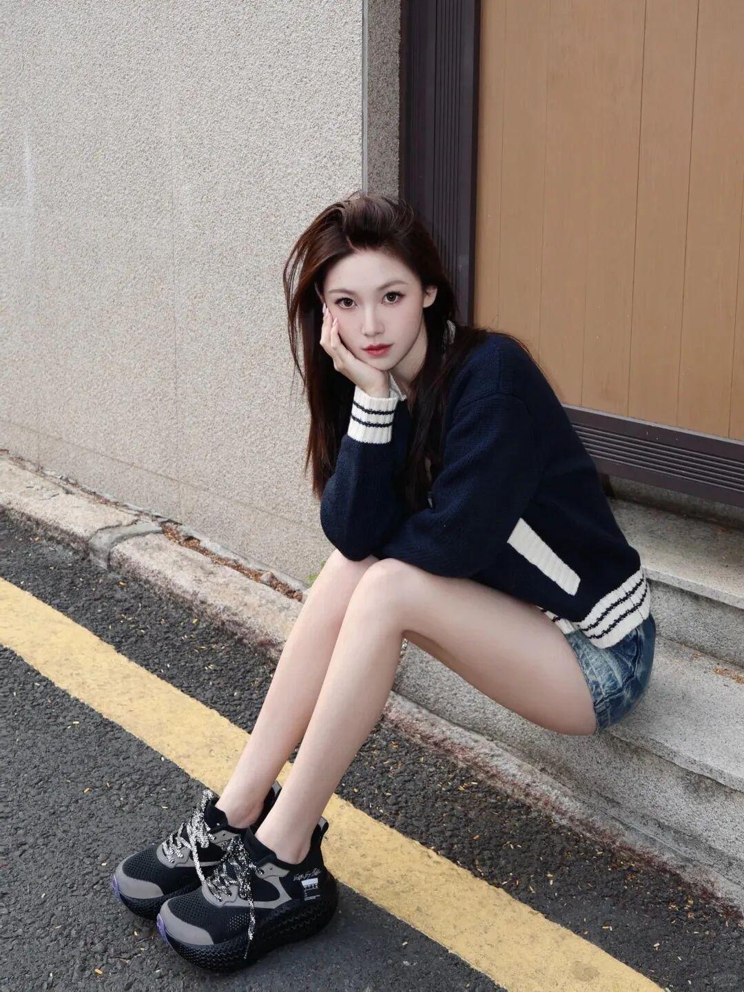白色背心+牛仔短裙,搭配深色开衫,简约又时尚!