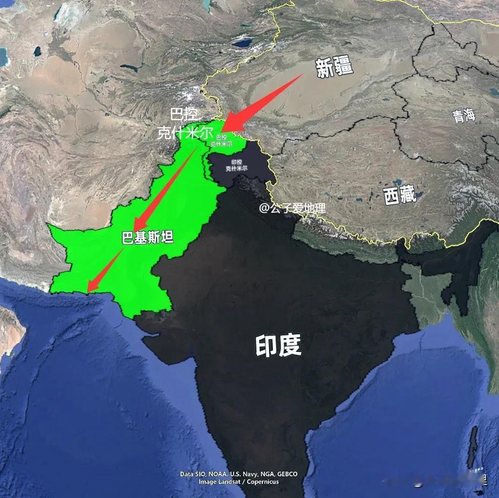 原来巴基斯坦与中国接壤,全靠巴控克什米尔, 要是失去了巴控克什米尔地区,巴基斯坦