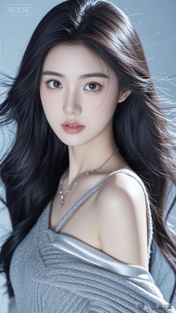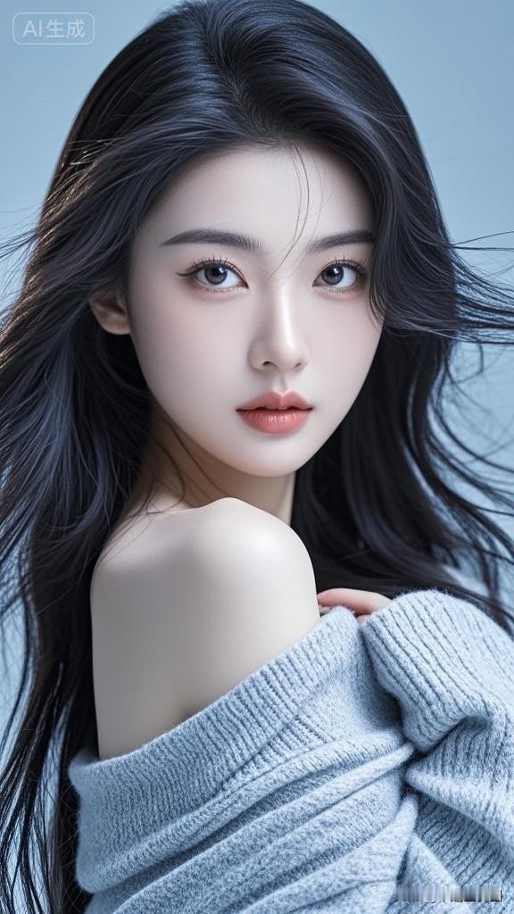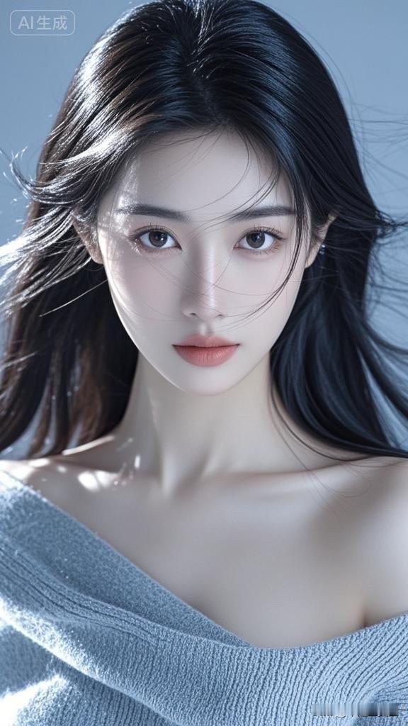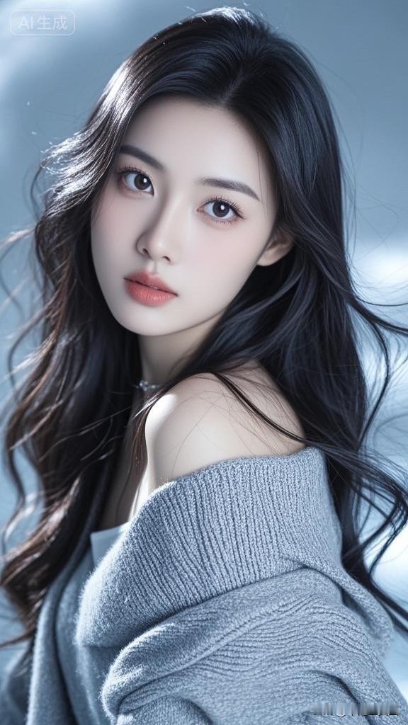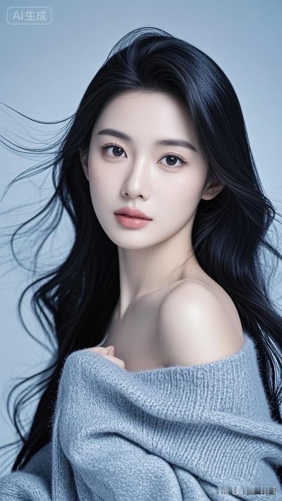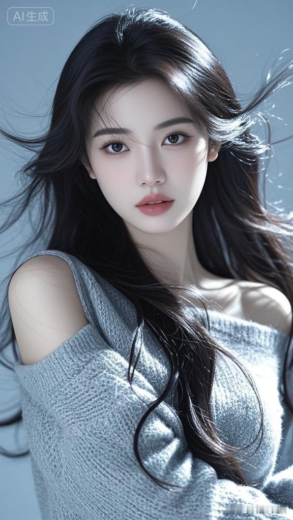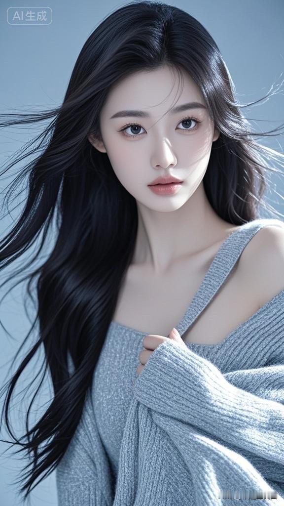温柔冷艳的气质,黑发飘飘,清新自然。