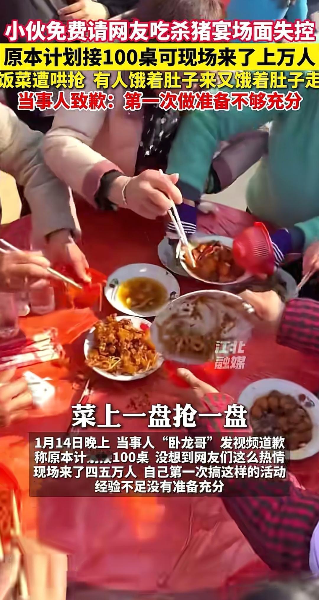 别再盲目办杀猪宴了 不是每一个人都是呆呆 看看这场面,直接上手去抓菜,乱作一团,呆呆那么火,家里面去那么多人能忙过来,不仅仅是因为亲戚朋友,还有合川文旅,帽子叔叔在现场帮忙,维持秩序 不要盲目跟风,安排妥当了再办杀猪宴,想一出是一出的方法可行不通