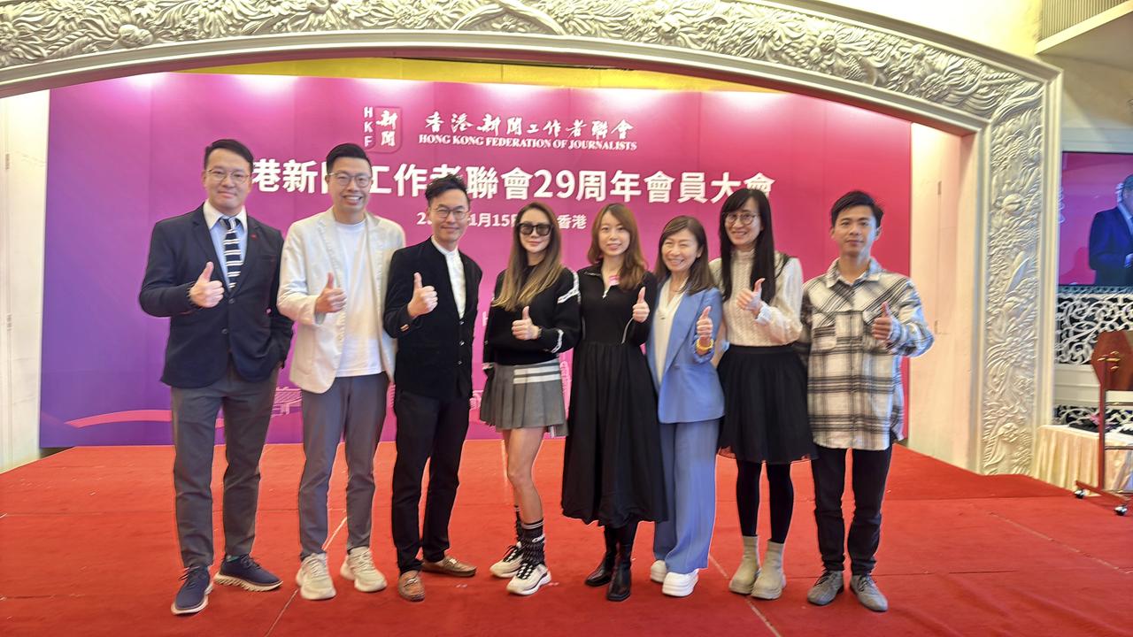 香港新闻工作者联会 29 周年会员大会 网络红人工作者协会小伙伴出席支持香港新闻工作者联会 29 周年会员大会,恭贺大会按规程通过各项议程,祝贺香港新闻工作者联会会务蒸蒸日上,继续为香港发放正能量,高sir感谢联会邀请及所有工作人员的安排,感谢各位KOL出席支持。