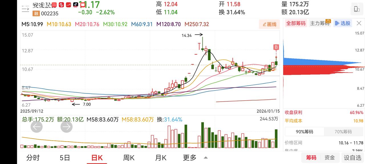 前期对大盘的风险做过提示。当两市成交金额超3.5万亿时要注意风险的规避。前期大盘经过连续的上涨,加上近期奸管层的干预。上证先看4050点左右的支撑。后期在走势上大概率是一个向下振荡探底的过程。操作上把握好每次冲高卖出的机会。今日加仓高乐股份、康盛股份。高乐股份经过较上时间的回调整理,风险大多已释放,今日量缩极至。有反弹要求。再次加仓。康盛股份前期涨幅不大,经过回调整理,量也是缩至前倍量的一半以下。有反弹要求。今日也是再次加仓。安妮股份11.07元介入,收盘11.17元。今天是我帐户上唯一一只红盘的票。今日放出巨量,明日如能高开,或能反包再次上板。其他股票暂时持有不动,等待极会。 个人观点仅供参考