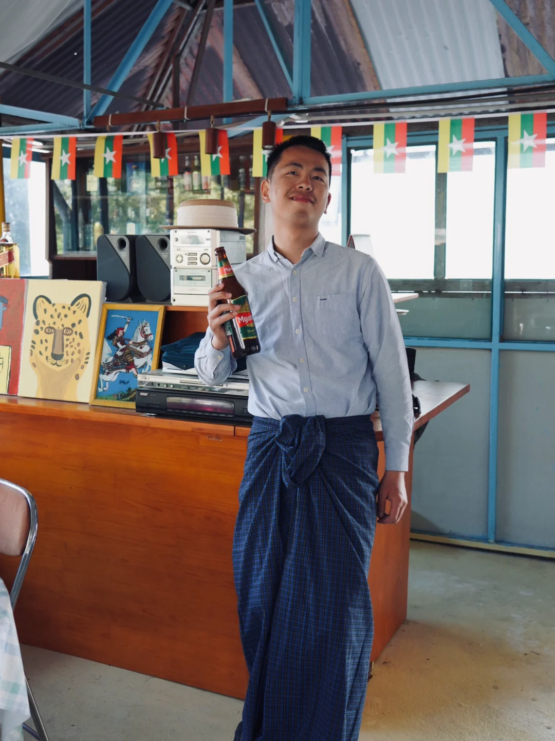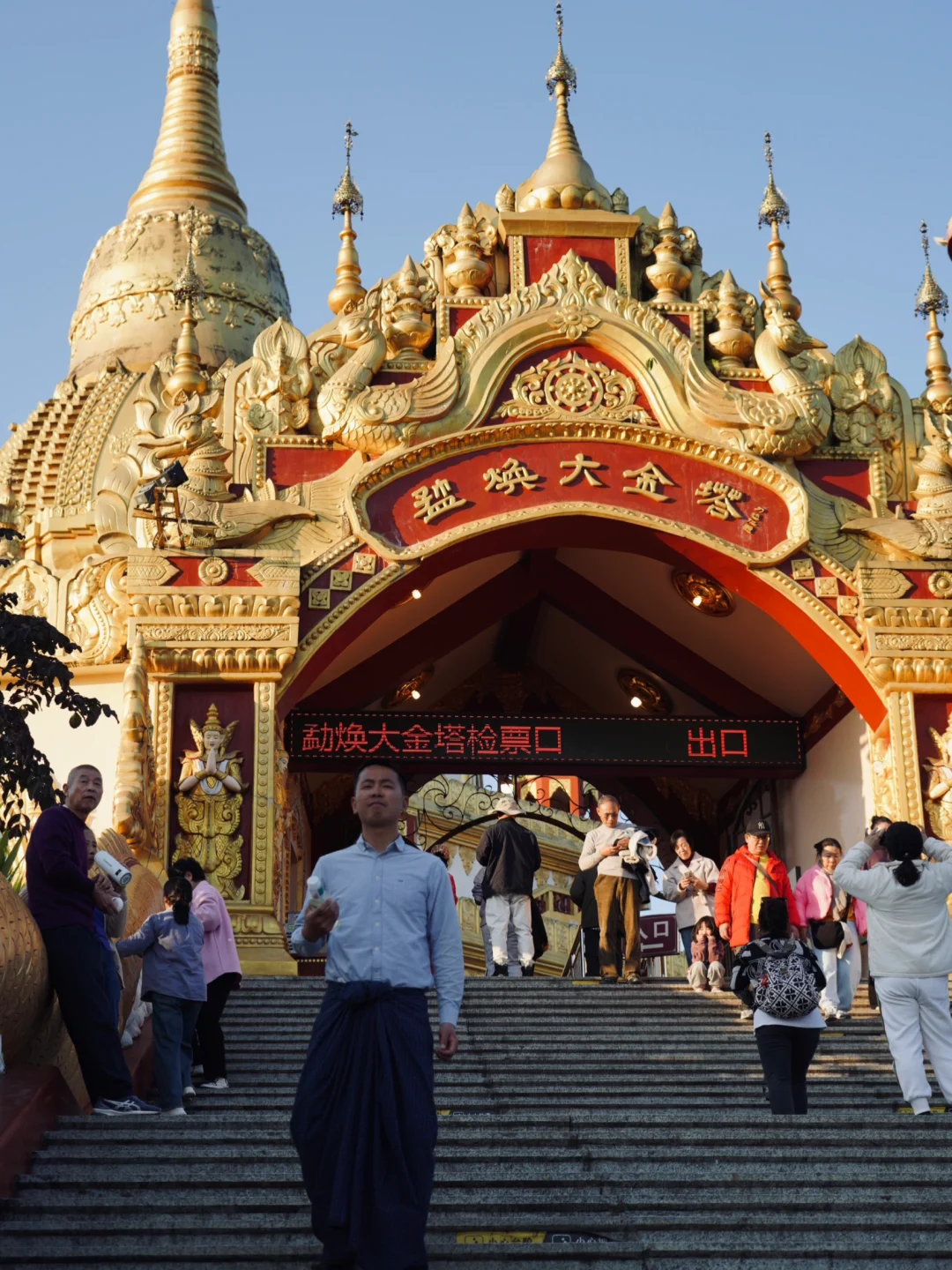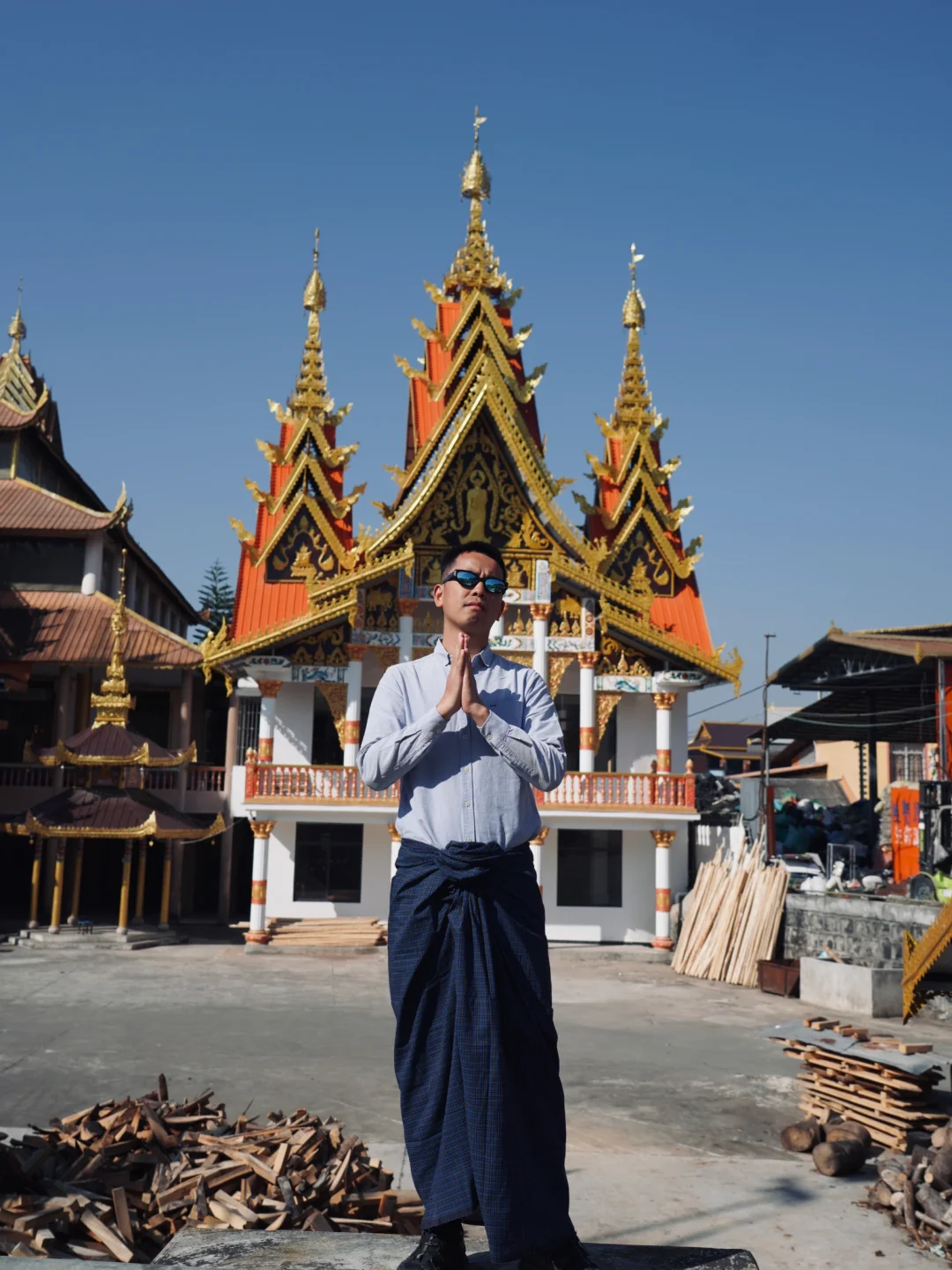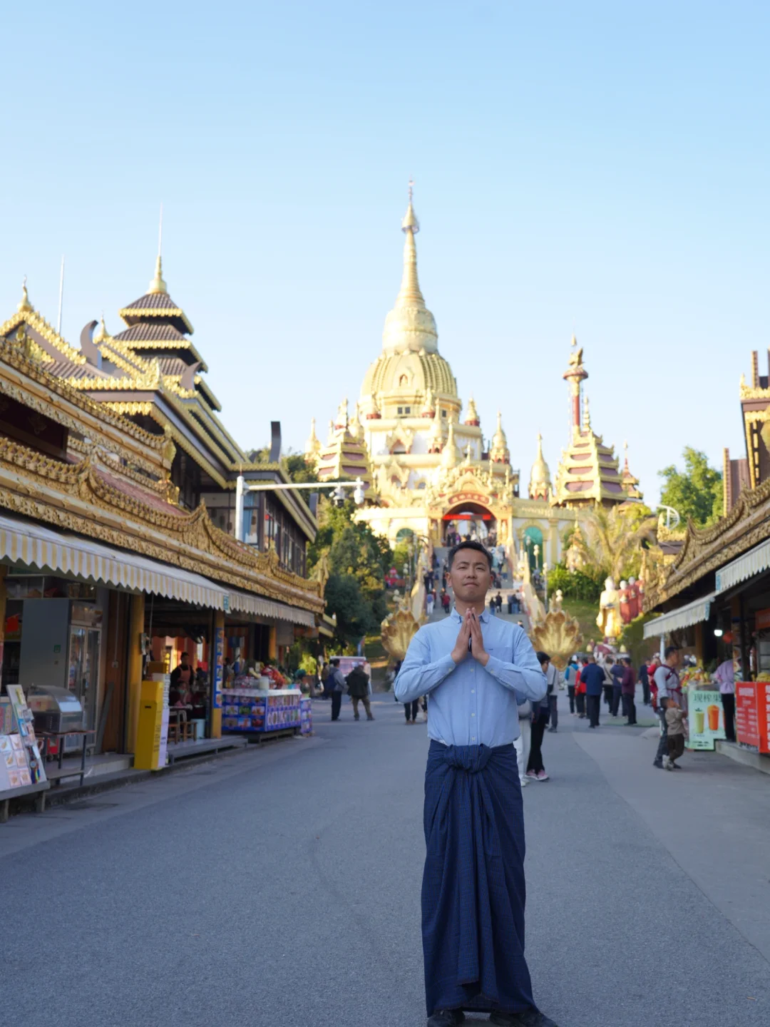 男生来芒市一定要试试穿隆基。 隆基是缅甸男士传统服装,《边水往事》中,猜叔的日常穿着就是隆基,穿上这条布裙在芒市可以拍出边水的故事感。 [向右R]在哪里可以买:丙午街服装城,傣装店基本都有,价格30-60不等,需要自己砍价。建议买素色的,男款越素越出片。 [向右R]最佳拍照机位: 1. 勐焕大金塔 2. 佛光寺 3. 松树寨 4. 上井坎榕树王 5. 古牛缅甸餐厅