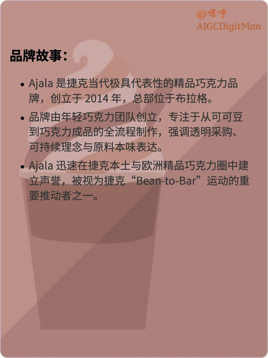 Ajala 是捷克当代极具代表性的精品巧克力品牌,创立于 2014 年,总部位于布拉格。