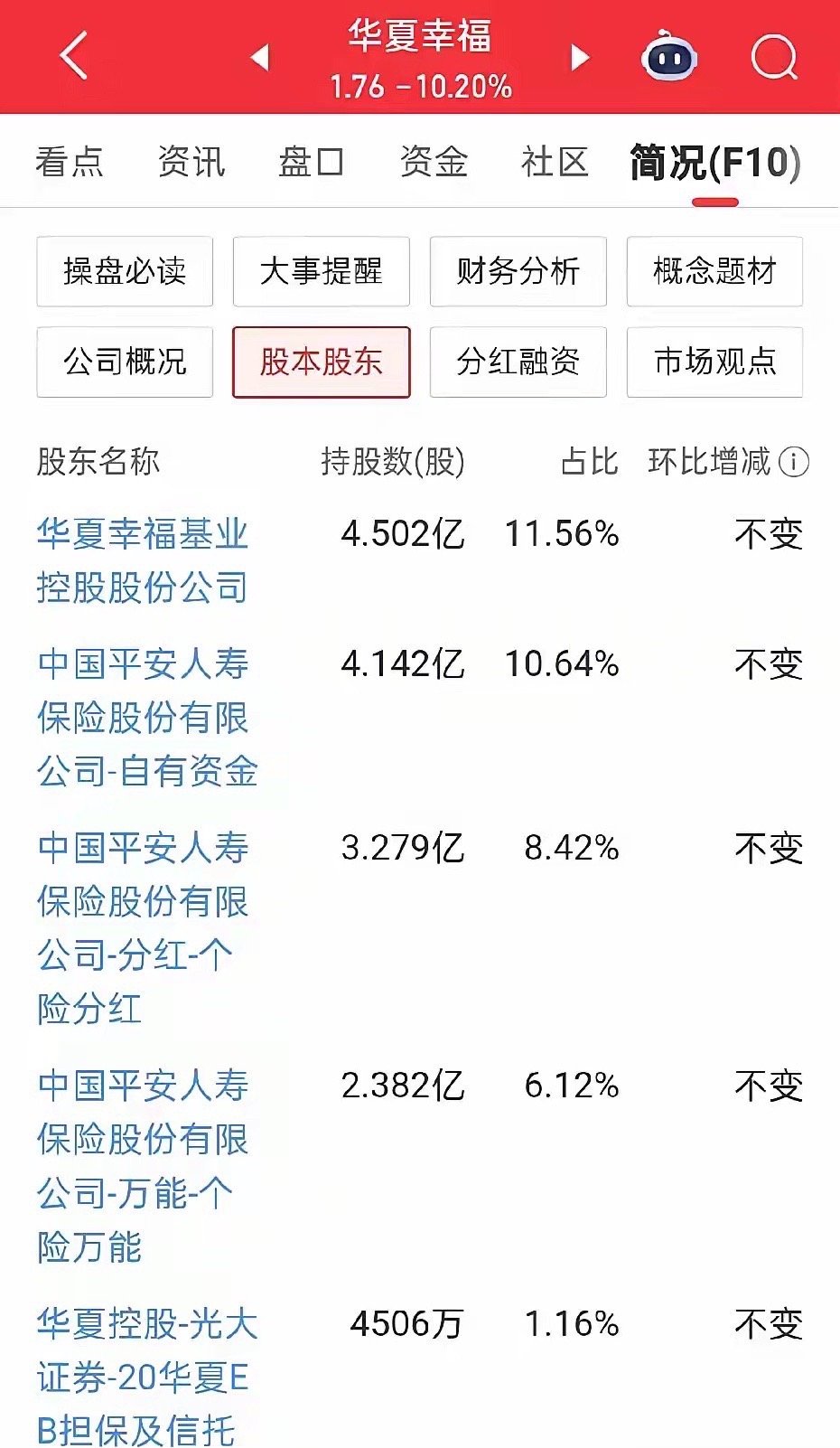 华夏幸福崩了!这两天华夏幸福预告公司有可能要退市,股票瞬间跌停,而且接连两天跌停。退市意味着什么?就是股东手里的股票一文不值了,财富瞬间化为乌有。而作为华夏幸福的十大股东之一的中国平安,这次是妥妥中招了。中国平安拥有华夏幸福10亿股份,而且股份在它买入后的几年时间里,从未减持,损失惨重。作为国内顶级保险公司,拥有国际领先的投资理念和策略,这次居然也栽了。