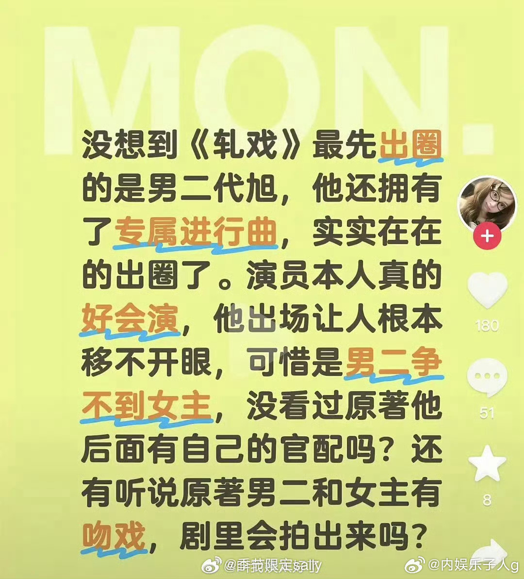 轧戏这剧竟然还要挣谁先出圈……都很扑啊好么陈星旭一番 那是一点都不扛剧啊…卢昱晓最近抖声量很好,以为能反哺一波呢,也没有