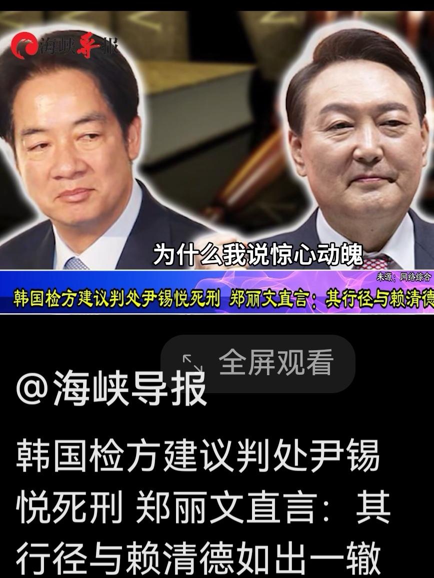 郑丽文又放出重磅炸弹:韩国前总统尹锡悦其行径与赖清德如出一辙。 就在13号,韩国检方要求法院以尹锡悦涉嫌内乱罪判处死刑。