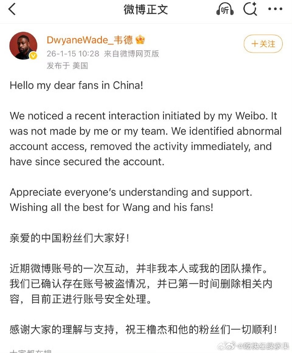 我去 还以为韦德也是楼丝 谁知道他称是被盗号了 哪个楼丝这么坏 把国际巨星的号顶了来支持自己的偶像韦德评论王橹杰 韦德祝王橹杰和粉丝一切顺利 橹穆