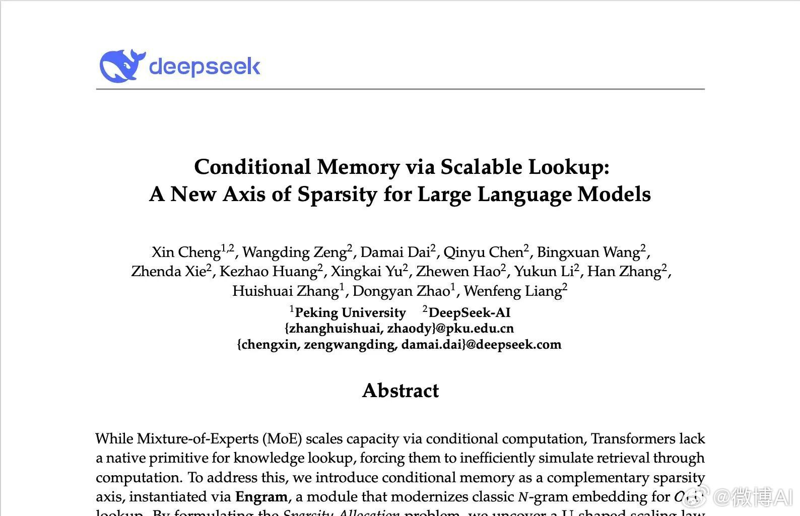 DeepSeekV4或引入全新记忆架构从已知信息看,这种分工确实能提升长文本处理和知识类任务表现,算力消耗也能降一截,甚至能靠CPU内存扩容记忆,不用死磕GPU显存。值得注意的是,记忆与推理的参数配比得精准拿捏,不然反而拖性能。整体来说还不错,不盲目堆参数,而是从架构上优化效率,至于最终效果,还得等V4正式亮相才能见分晓。