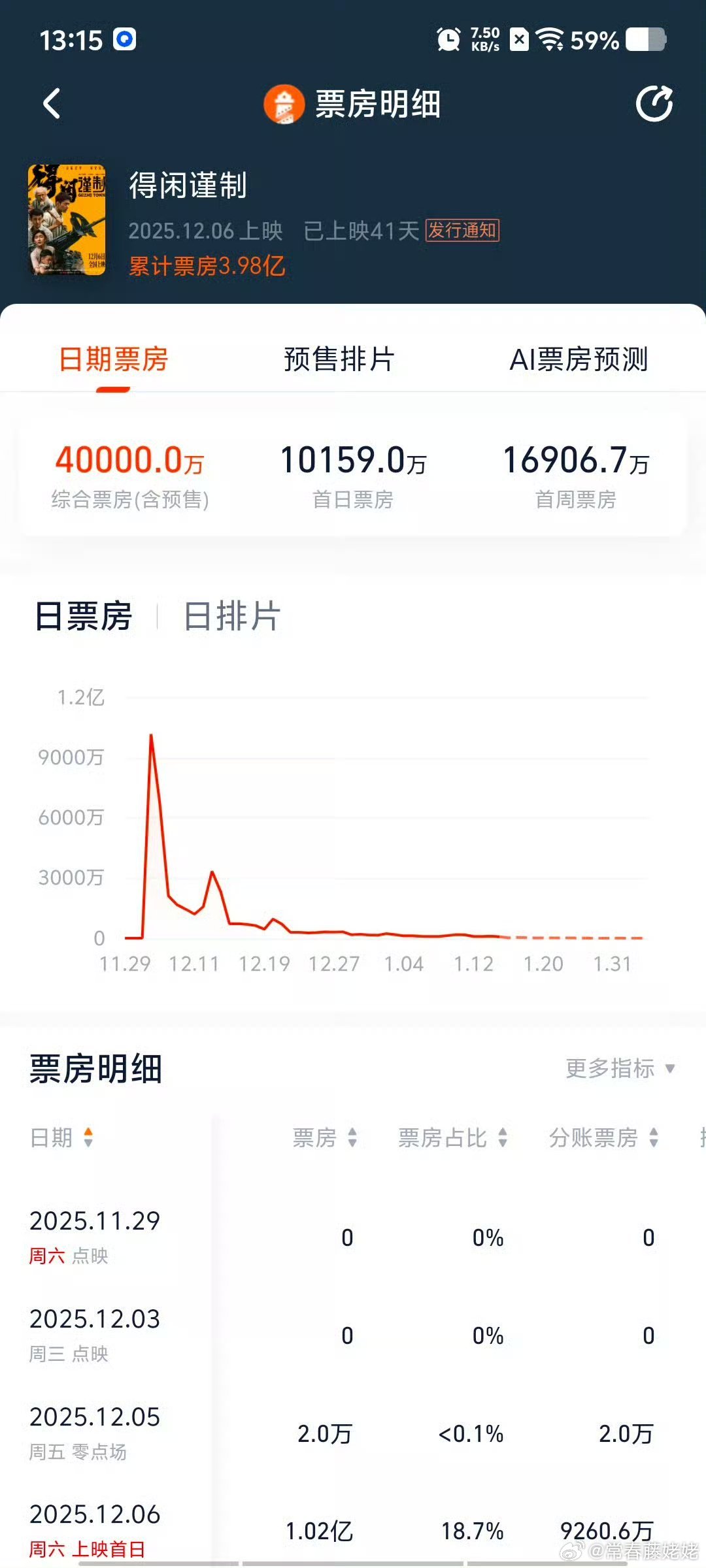 得闲谨制票房破4亿 我的天啊!得闲谨制4亿了!这真是谁也没能想到的结果,还记得当初朋友和我说得闲要空降但是要我保密时的心情,那会觉得只有1周时间,什么物料都没有,这电影怎么办,当时朋友和我说,这电影唯一的胜算就是肖战,在排片,宣传周期,营销成本如此捉襟见肘的情况下,依靠肖战和超高电影质量,得闲拿下2025年国庆档期以后票房最高的真人电影!太牛逼了!!