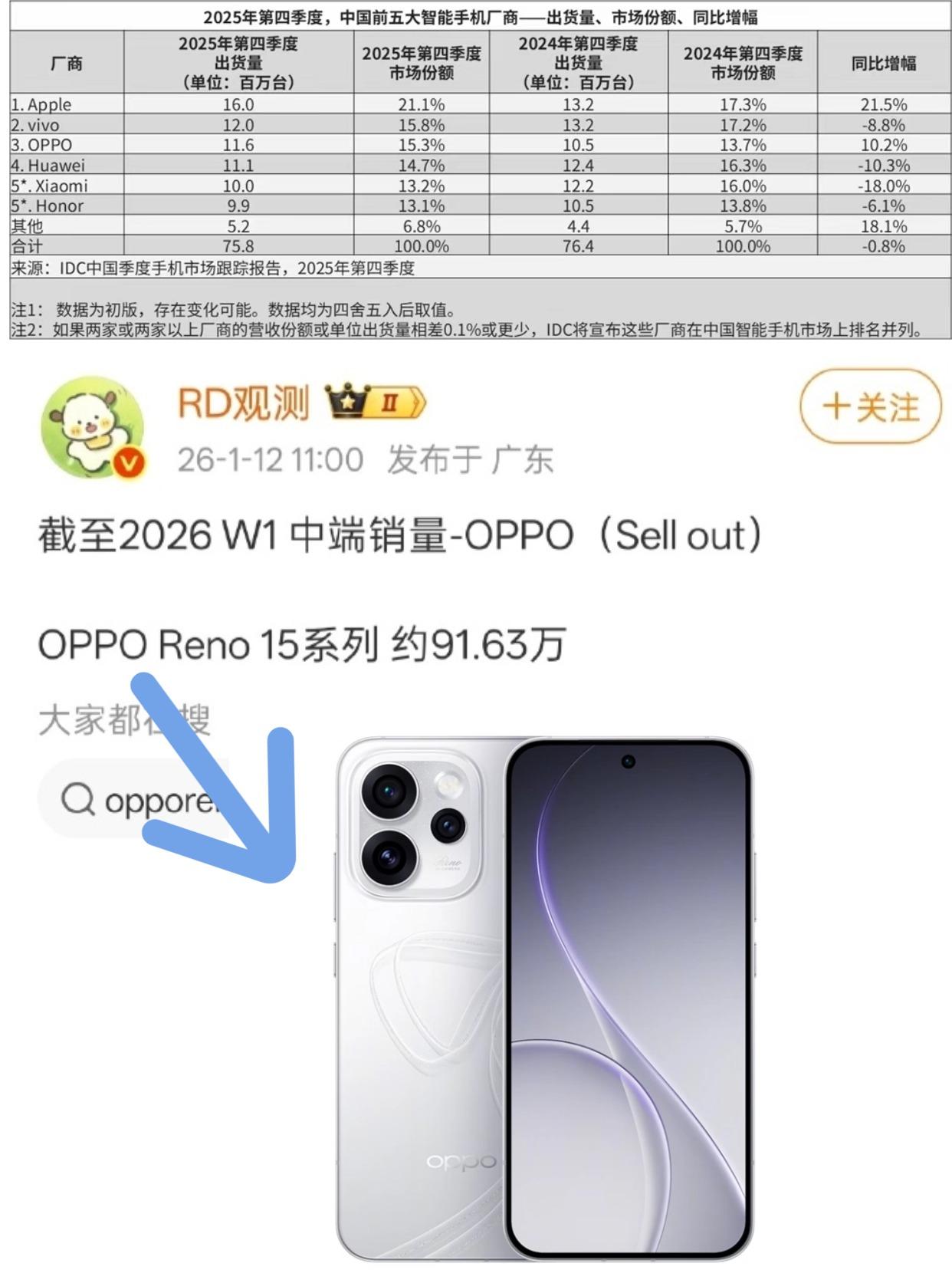 到底什么手机泡水里一个月都没事? OPPO,你真无敌了!! 刷到个大学生的离谱经历直接给我看傻了🤔 她不小心把手机掉学校湖里, 整整泡了一个月才等到学校放水成功打捞起来, 本以为早成废铁了,💡结果居然还能正常开机使用 -- 这款Reno14泡湖里一个月还能正常使用,说实话确实挺震撼的 这也难怪很多人都说OPPO的品控好✨ ~ -- 我觉得吧质量过硬自然也会吸引更多人买单, 从IDC公布的第四季度报告来看, OPPO在国内出货量排到前三,而且还是国产安卓里逆势增长的。 另外RD观测公布的市场销量中, Reno15系列累计销量已经冲到91.63万台,在同档位机型里是领先的。 -- 当然这也不难理解,Reno15产品力在同档位确实更吸引人, 2亿像素主摄搭配5000万像素潜望长焦,远近景都能轻松拿捏, 还有CCD闪光实况、4K实况一拍多出、出圈实况拼图等各种出片功能玩法~ 再加上丝滑流畅的ColorOS 16系统,轻薄高颜值机身,真的活该它卖得火!🔥 -- 女大学生手机落水1个月后被找回 OPPOReno15 手机推荐 数码大实话 OPPO销量第一 实况照片 高颜值手机 数码测评 新年换新机