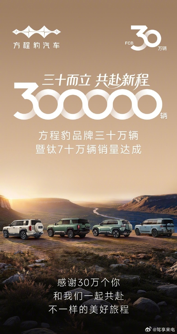 方程豹销量突破30万辆方程豹这增长速度太猛了!品牌累计销量直接突破 30 万辆,其中钛 7 单车型就卖了 10 万辆,妥妥的爆款担当~2025 年堪称方程豹的爆发年,全年销量 23.46 万辆,同比暴涨 316.1%,12 月单月更是卖了 5.08 万辆。钛 7 作为新晋顶流,上市才四个多月就达成 10 万销量,12 月单月卖 3.4 万辆;钛 3 稳坐纯电 “方盒子” 销冠,豹 5、豹 8 也分别拿下硬派越野和高端市场冠军。“豹 + 钛” 双线布局太成功,15-40 万价格区间精准覆盖家用和越野需求,比亚迪的技术加持 + 精准定位,让方程豹直接跻身一线新能源品牌~