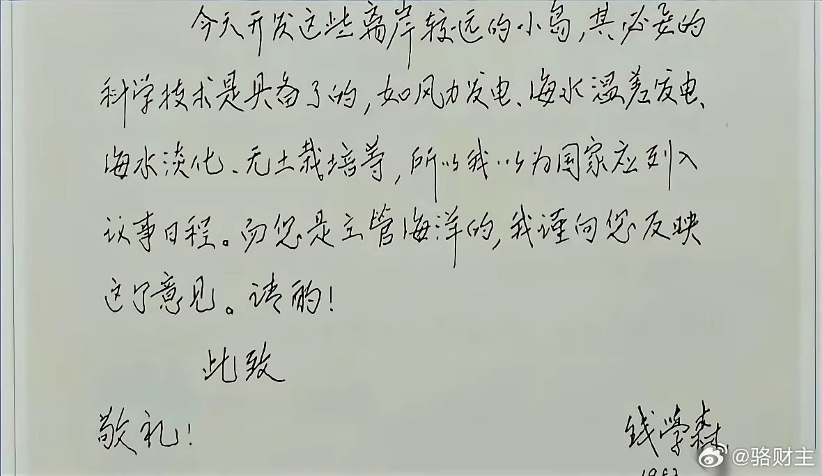 我一直以为钱学森就是搞火箭、搞导弹的,国之重器嘛。今天才知道,我格局小了。真的,小得可怜。1987年,一封信。那会儿大家都在瞅着海南建省,想着怎么搞经济、发大财。钱老呢?他在想几千公里外的那些小岛礁。信里第一句话就特别实在,甚至有点扎心:咱们以前顾不上,人家就动了歪心思。这话说的,一点面子都不给,但就是事实。然后,石破天惊的一招来了。他说,海南建省,别光盯着海南岛。东沙、西沙、中沙、南沙,必须白纸黑字写进去,这地儿,归新成立的海南省管!一句话,直接从法理上把“根”给钉死了。光说没用啊,人怎么待?怎么活?老爷子连技术方案都想好了。风力发电、海水温差发电、海水淡化、无土栽培……听听,海水温差发电!80年代末啊我的天!这哪是科学家,这简直是开了上帝视角的顶级战略玩家。他不是在纸上谈兵。他是在说,主权这东西,不是喊出来的,是靠一个个活生生的人,靠一度电、一滴淡水、一棵菜,实实在在“住”出来的。你人在那儿,生活在那儿,那儿才是你的。有些事,我们今天才看明白。但有些人,在几十年前,就为我们把能想到的,都想到了。这种感觉怎么说呢……就好像你打着伞走在雨里,抬头才发现,根本不是你这把伞厉害。是有人在更高的地方,为你撑开了一片天。