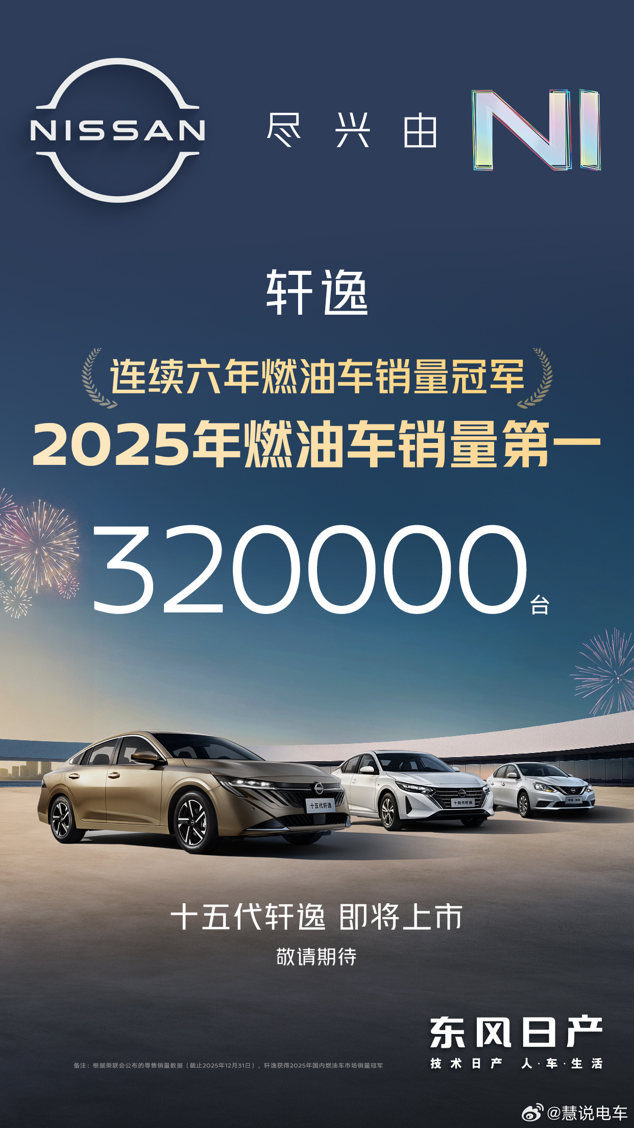 给大家看一组东风日产的数字,着实让我有些震惊。行业新实力,满电再起飞!乘联会最新数据出炉,东风日产交出2025硬核成绩单:🔹 N6斩获合资插混销量第一 🔹 天籁·鸿蒙座舱12月销量环比翻番 🔹 轩逸销量累计32万,连续六年燃油销量冠军累计销售1700万台,轩逸32万台。这个数字很亮眼。东风日产 行业新实力 满电起飞 感谢1700万 新能源转型