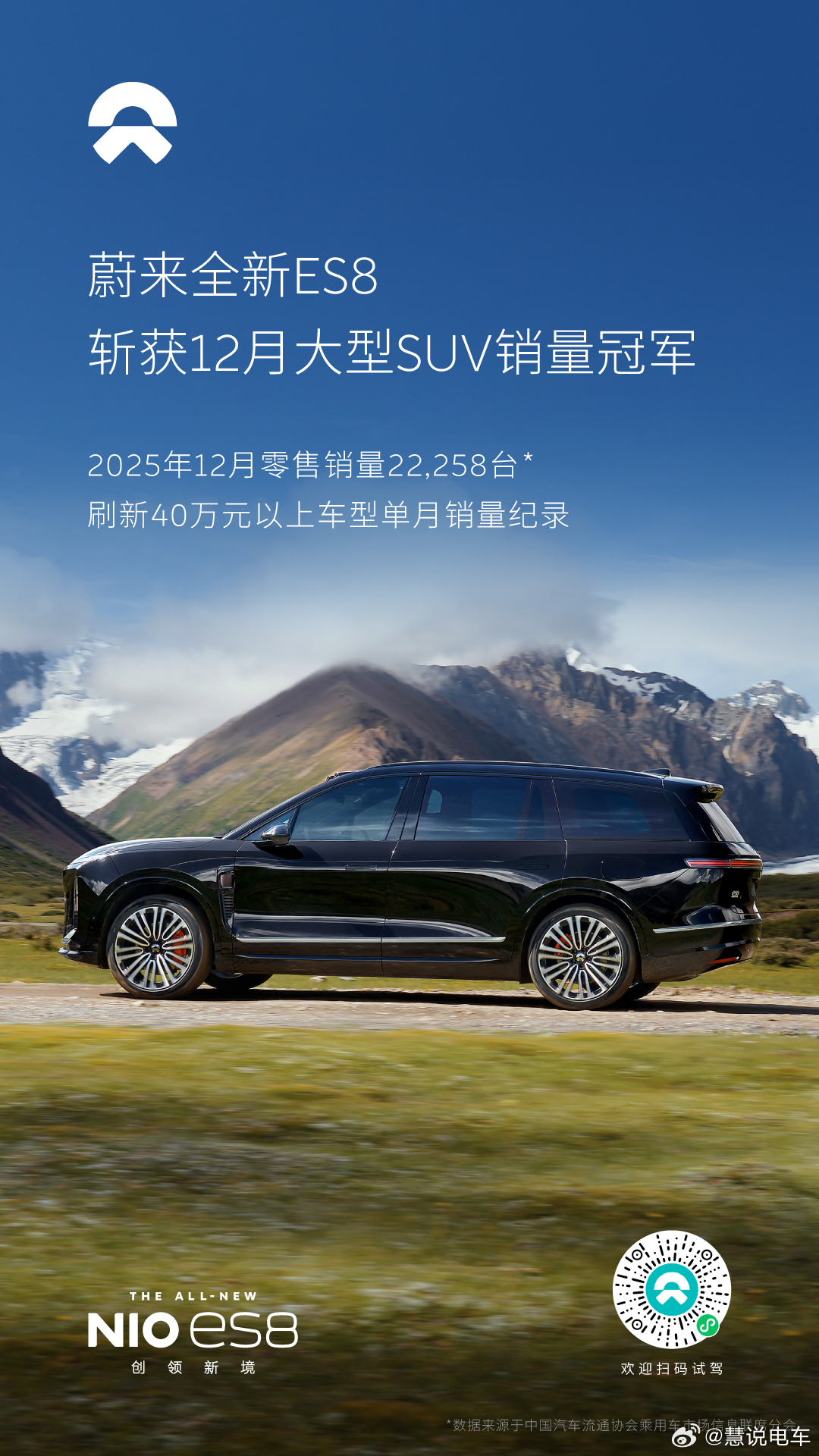 2025年12月,全新ES8交出了单月零售销量22,258台的成绩单,斩获12月大型SUV销量冠军,同时还斩获了大三排SUV市场,以及40万元以上车型销量冠军。纯电大三排SUV的黄金时代正在到来。蔚来蔚来全新ES8斩获12月大型SUV销量冠军蔚来