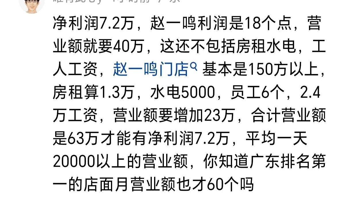网上刷到一个帖子,说浙江金华有四个哥们合伙开了家零食店,每人每月纯赚一万八。 底下几百条评论,全是“求带”“求加盟”的,气氛烘托得那叫一个热烈。 结果,一个懂行大哥的留言,像一盆冰水,从头浇到尾。 他没说别的,就只算了一笔账。 “四个人,一人一万八,一个月纯利就是七万二。零食这行,利润能给你算到18个点就算顶天了,这么倒推回去,月营业额至少要干到四十万。” 他顿了顿,又敲下一行字。 “再加上房租、水电、人工这些死成本,每个月店里的流水没跑到六十多万,这七万二的利润,是从天上掉下来的?” 大哥最后只补了一句:“广东全省生意最好的那家店,一个月也就这个数。金华一个店,干翻一个省?” 这条评论发出来,整个评论区的风向瞬间就变了。 之前排队喊“大哥带我”的人,全都开始@楼主,问他怎么不说话了。 原先那个火热的帖子,楼主再也没出来回过一个字。 所以说,有时候你以为别人在分享发财秘籍,其实在行家眼里,分享的全是破绽。