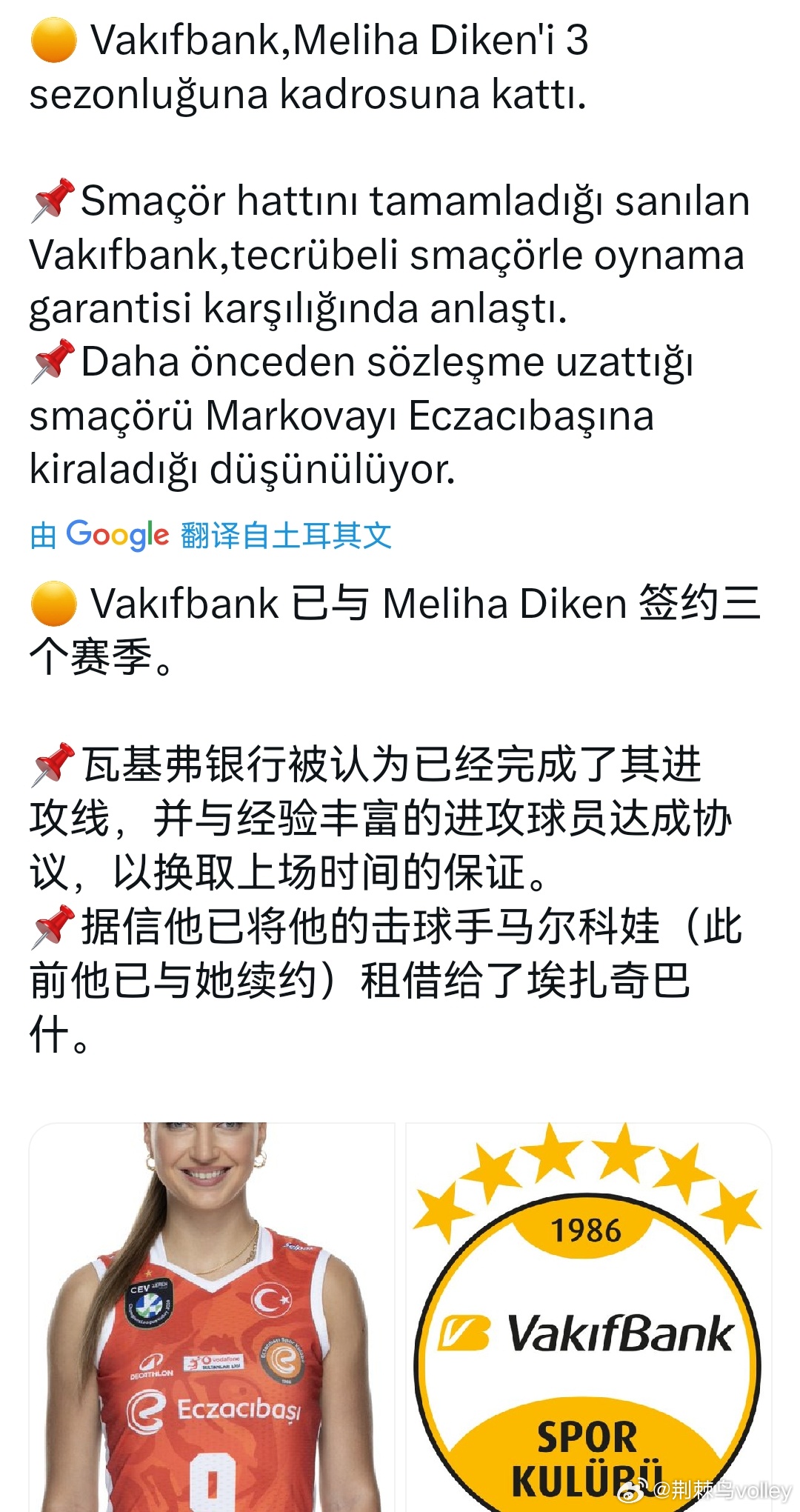 曝梅里哈重返豪门瓦基弗银行。但是马尔科娃这段我觉得是假新闻。女排国际排坛动态