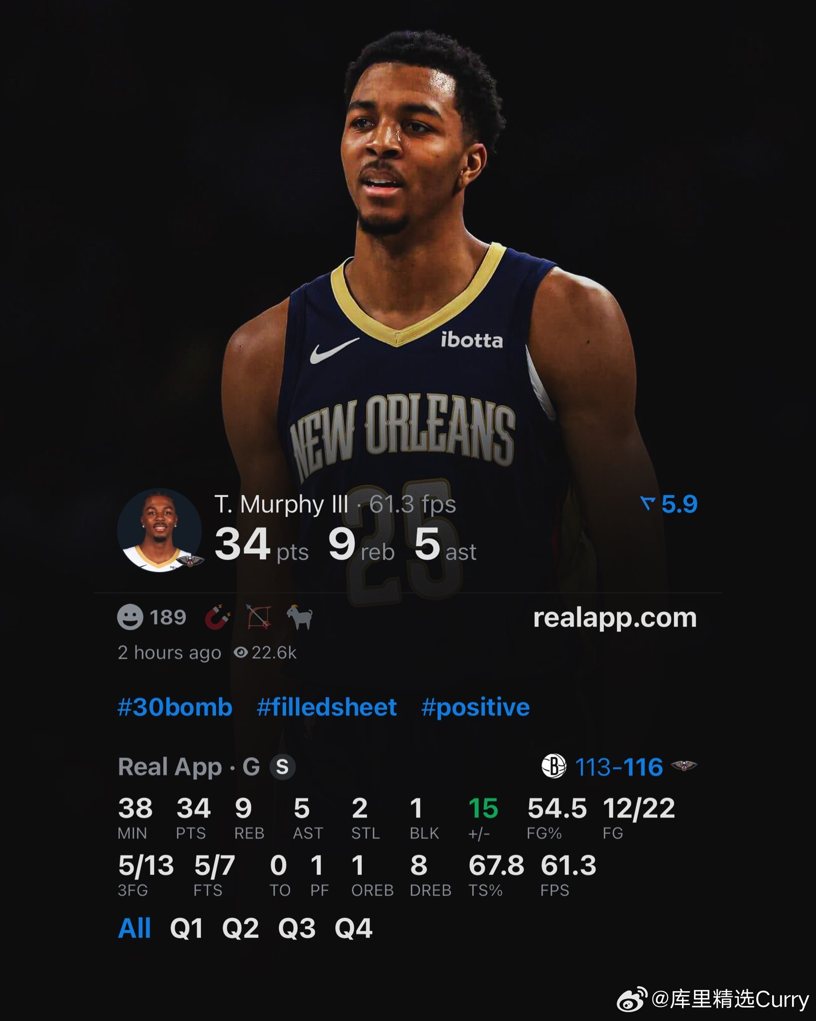 购物车之战?🛒小波特绝平失败,鹈鹕116-113胜篮网墨菲34分9板5助,小波