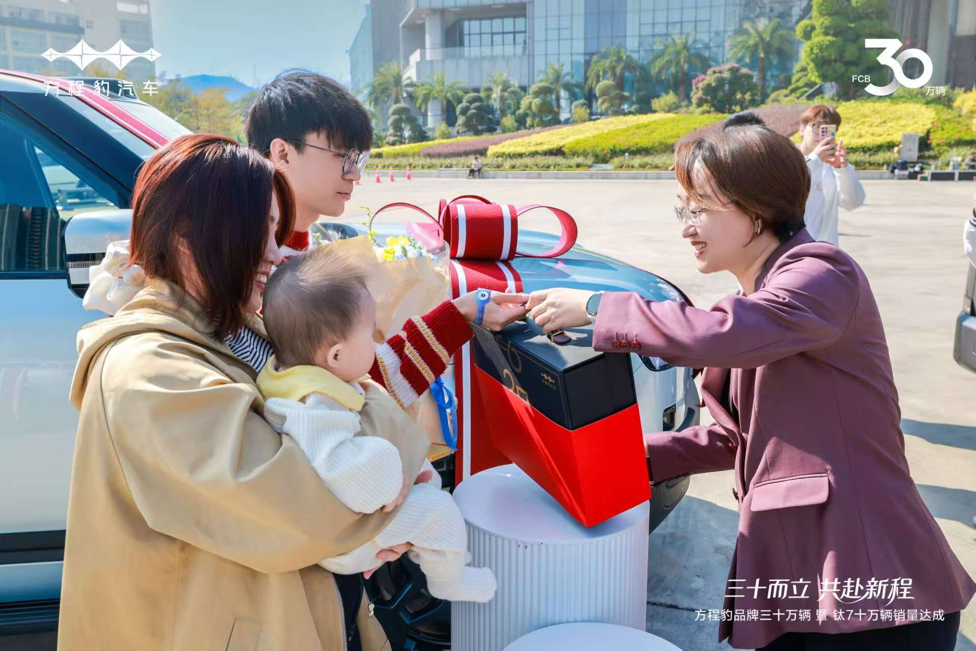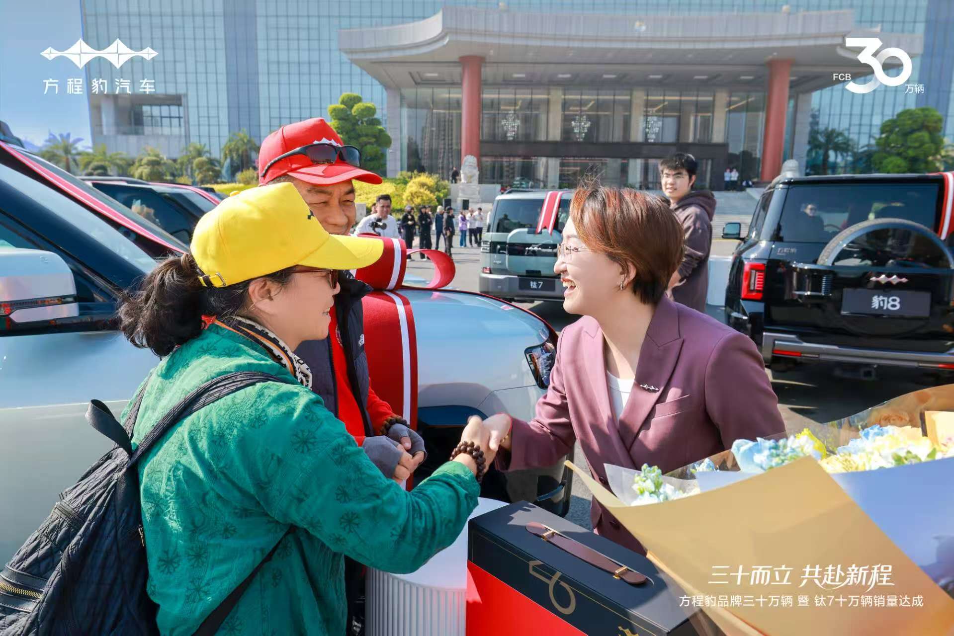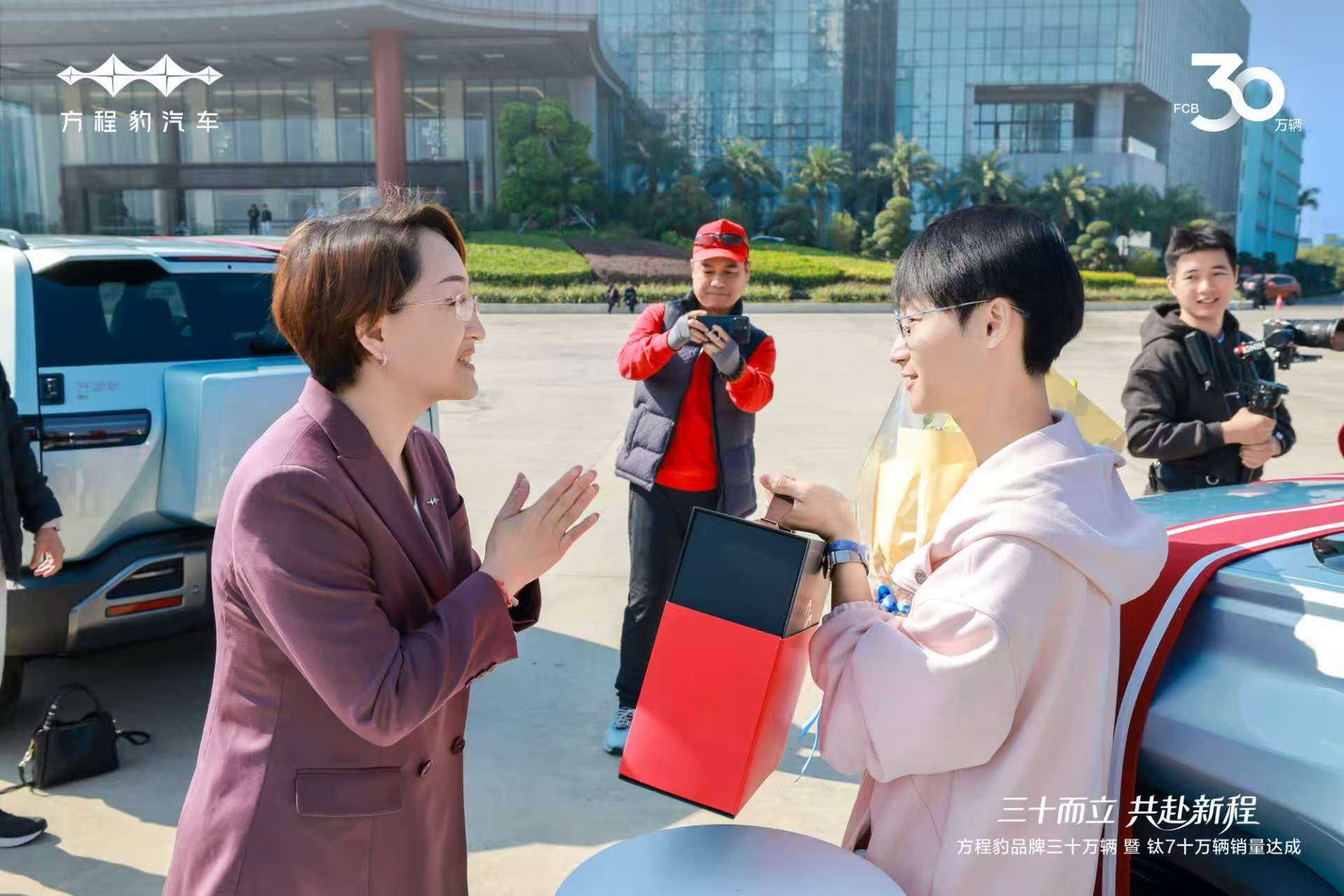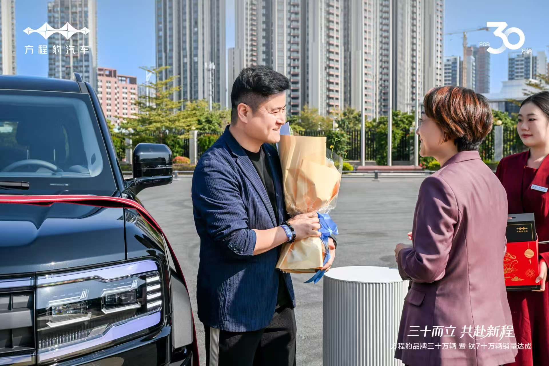 在品牌三十万辆集中交付仪式上,方程豹总经理为30位车主惊喜交车,与用户共同迎接品牌的30万辆里程碑。