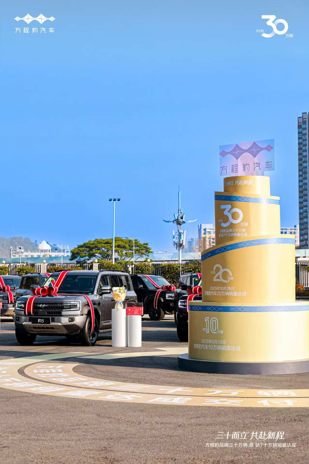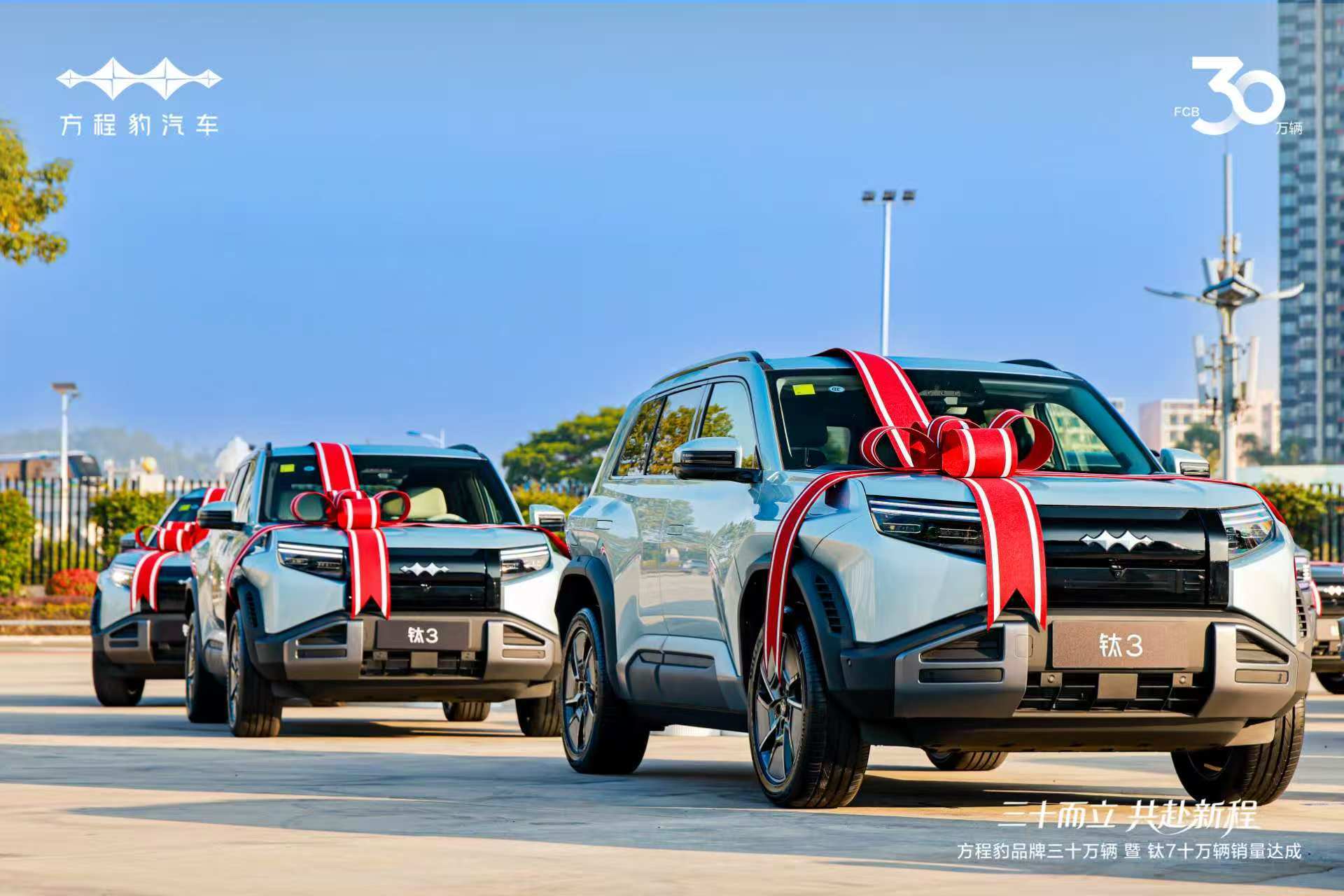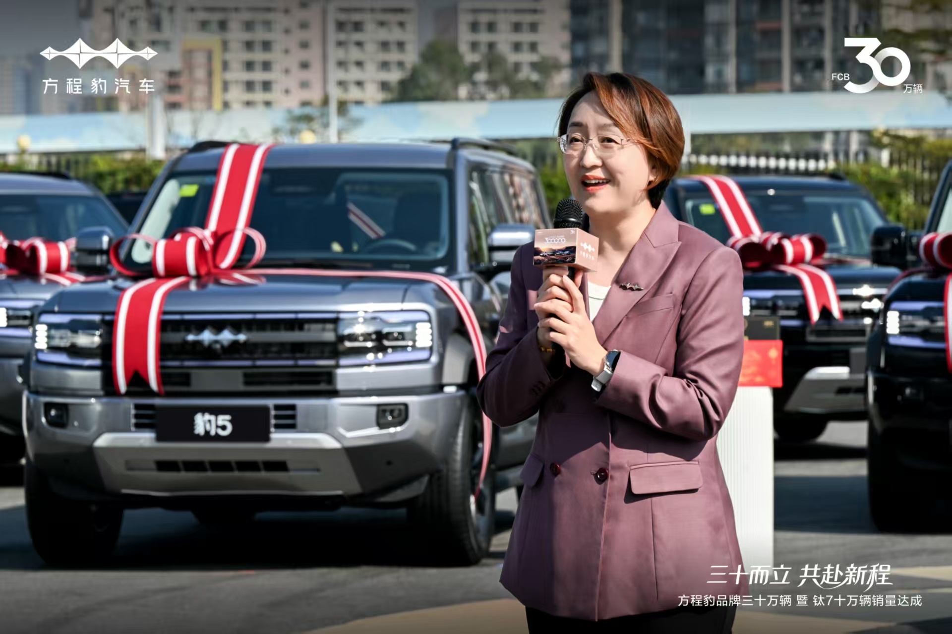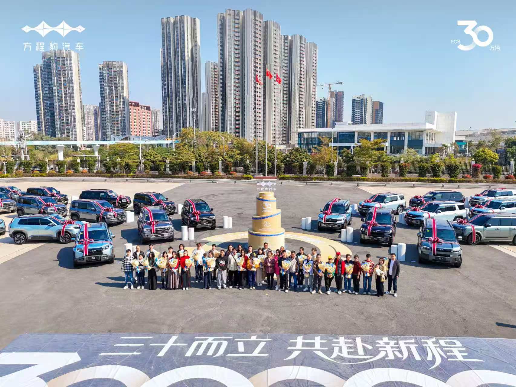 在品牌三十万辆集中交付仪式上,方程豹总经理为30位车主惊喜交车,与用户共同迎接品牌的30万辆里程碑。