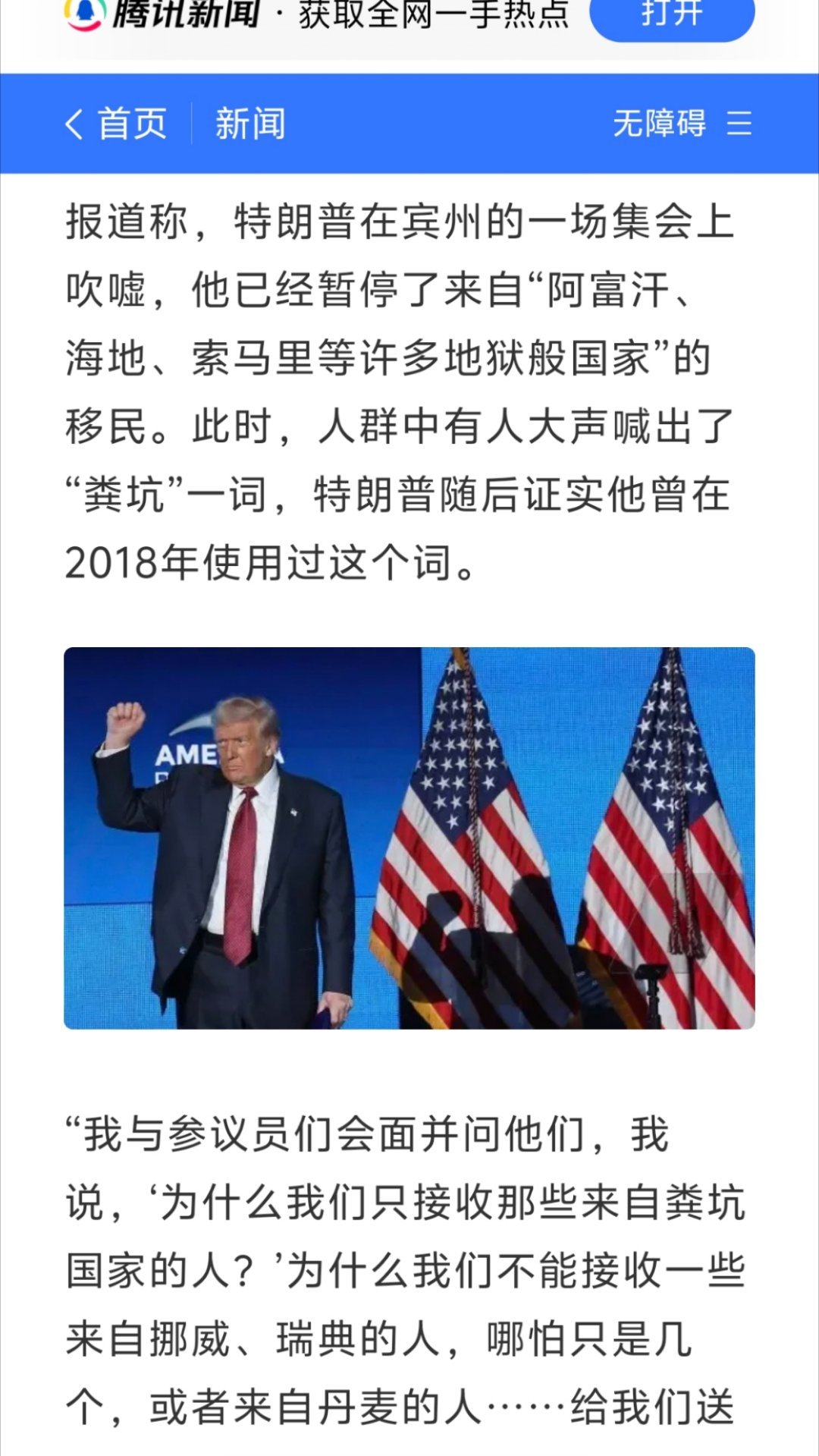 美国将暂停对75个国家的所有签证很多朋友会震惊,但其实熟悉特朗普的人就知道,这种清单被堂而皇之的拉出来是迟早的事。早在2018年,特朗普就说过,海地,索马里,阿富汗这种“非白人国家”是地狱般的国家,当时下面有观众用了“粪坑国家”来形容,后来特朗普也把这个词捡起来用了。既然能在公开场合提出禁止“粪坑国家”移民,那么现在搞“粪坑名单扩大化”也丝毫不奇怪,毕竟这个是特朗普,在“以总统身份完成离谱程诺”这一块,特朗普也算是美国总统里最有诚信的了
