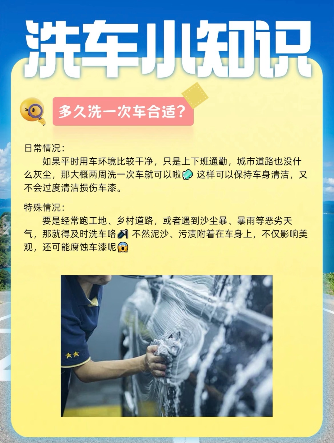 🕙多久洗一次车合适?日常情况:如果平时用车环境比较干净,只是上下班通勤,城市道
