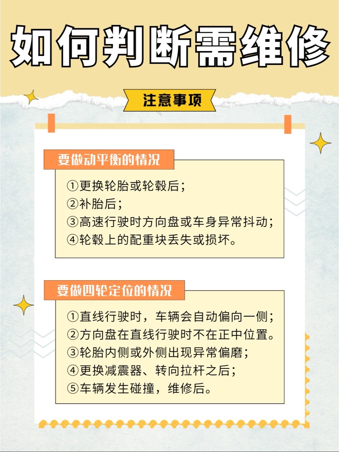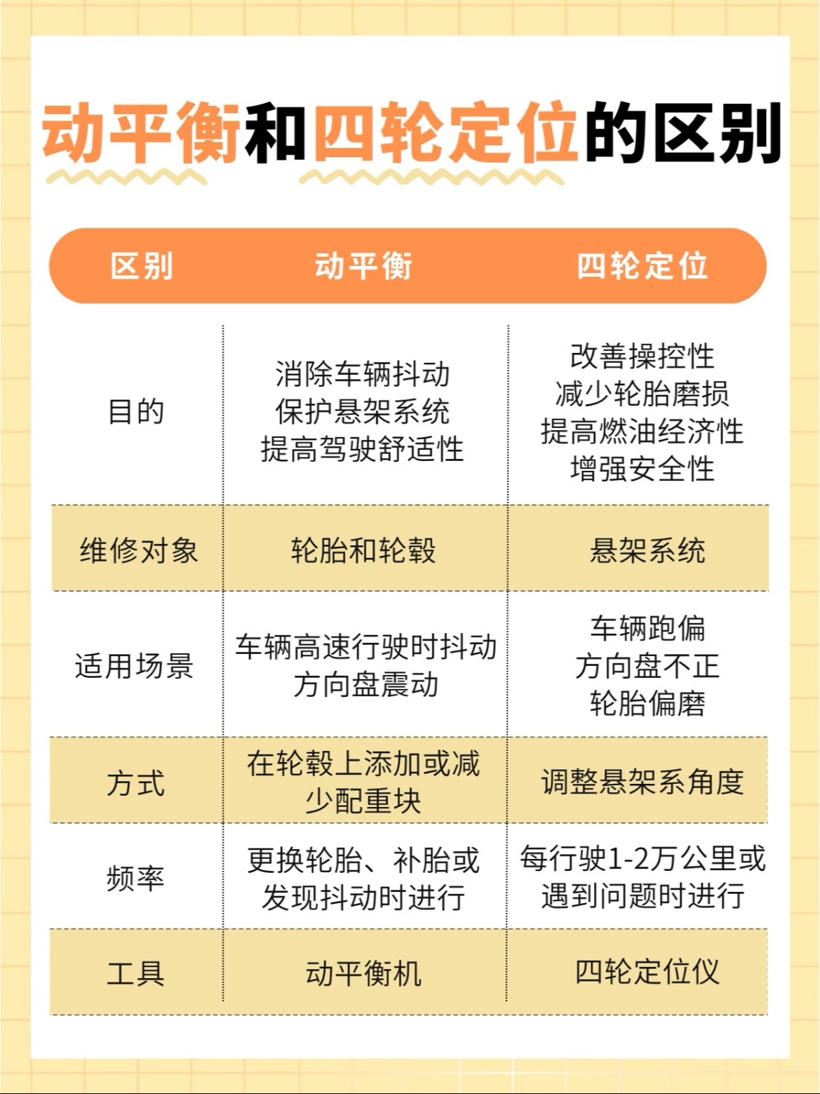 很多车主一感觉方向盘抖或车跑偏,就喊着要做四轮定位其实,这俩完全是两回事!做错项目不仅白花钱,还可能让车况更差。1️⃣动平衡 → 治“抖”修的是轮胎本身,通过轮毂上加配重块,让车轮重心均匀。只在换胎、补胎、换轮毂后,或者高速时方向盘或车身抖动和轮毂上配重块掉了再做2️⃣四轮定位 → 治“偏”调的是悬挂角度,让车轮保持最佳接地姿态。一般在直线行驶时车辆跑偏、方向盘不正、轮胎出现单侧偏磨、换过减震器、转向拉杆等悬挂件后做最好动平衡通常几十块,随时可做,不过四轮定位建议每1-2万公里检查一次我与汽车的日常大v聊车