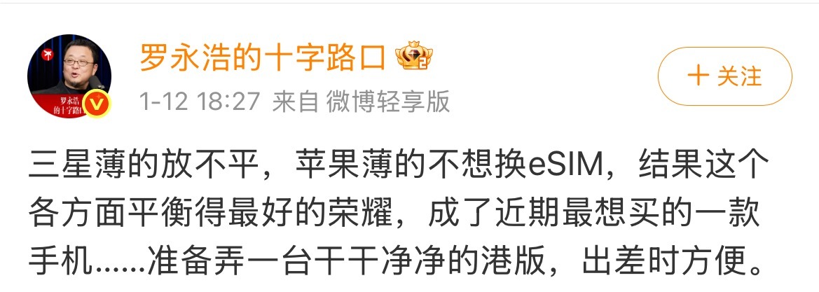 “安卓超薄手机里最全面的”牛啊不过 荣 耀 Air 确实不只是薄,更把🍎Air被人吐槽的单扬声器、eSIM支持等问题解决他俩说它最均衡最全面也不无道理。所以 后面的 生 产 估计就不只是“价 值 取向”,更是“产 品 力 取 向”了王自如说荣耀Air补齐iPhoneAir短板